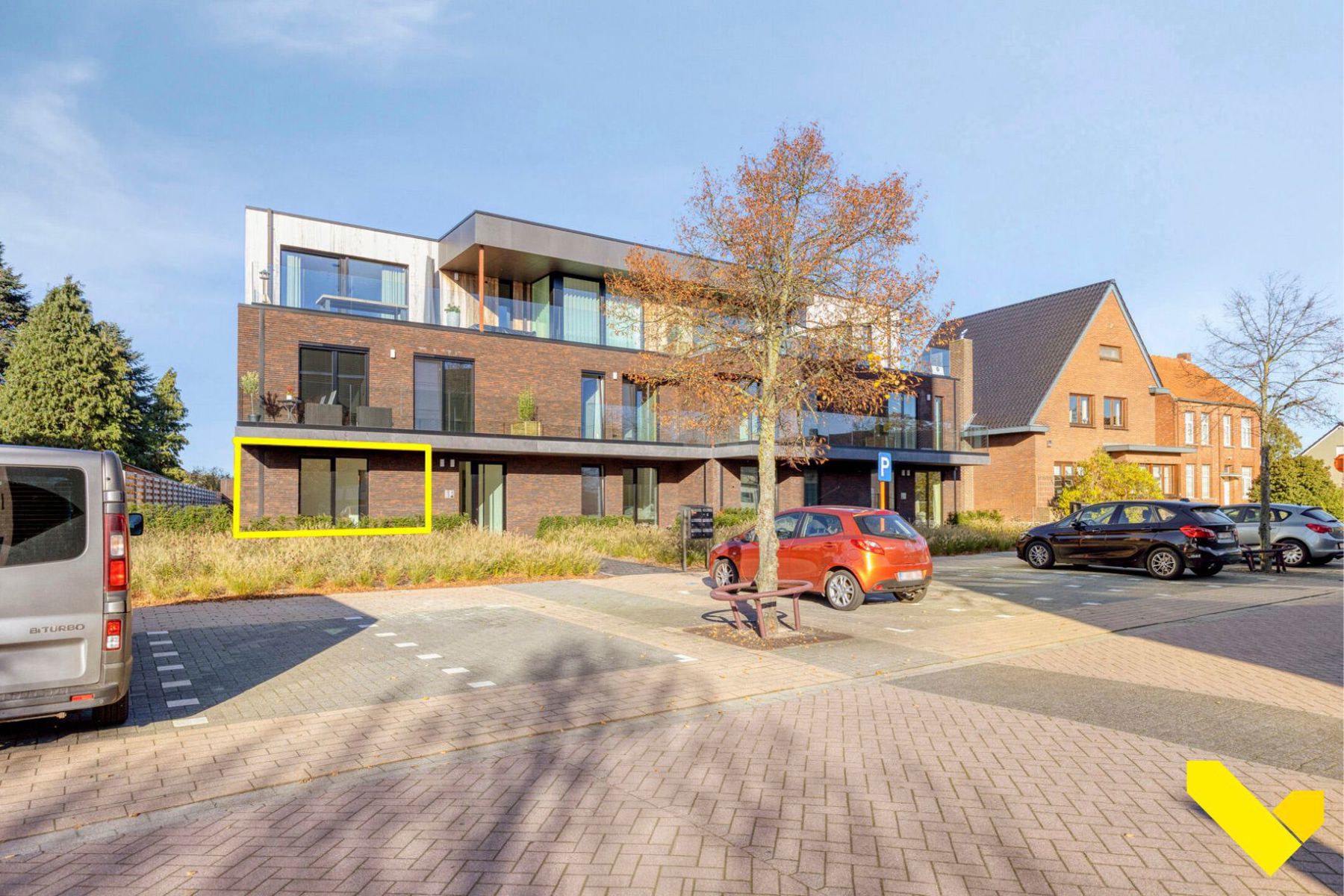 Dit gelijkvloers appartement omvat een inkomhal, woonkamer met open keuken en veel 'natuurlijk' lichtinval door de grote glaspartijen, badkamer met mogelijkheid voor dubbele lavabo, inloopdouche en bad, slaapkamer en een apart gastentoilet.