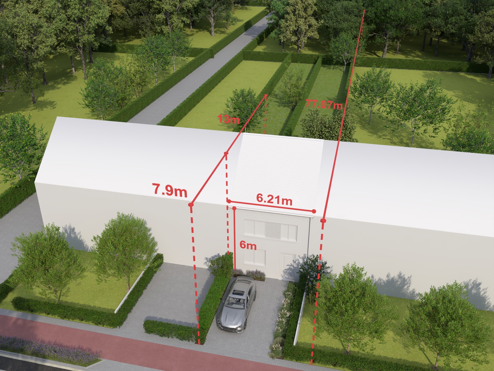 Met een creatief ontwerp kan hier een gezellige en praktische gezinswoning worden gerealiseerd, volledig op maat van uw wensen.
