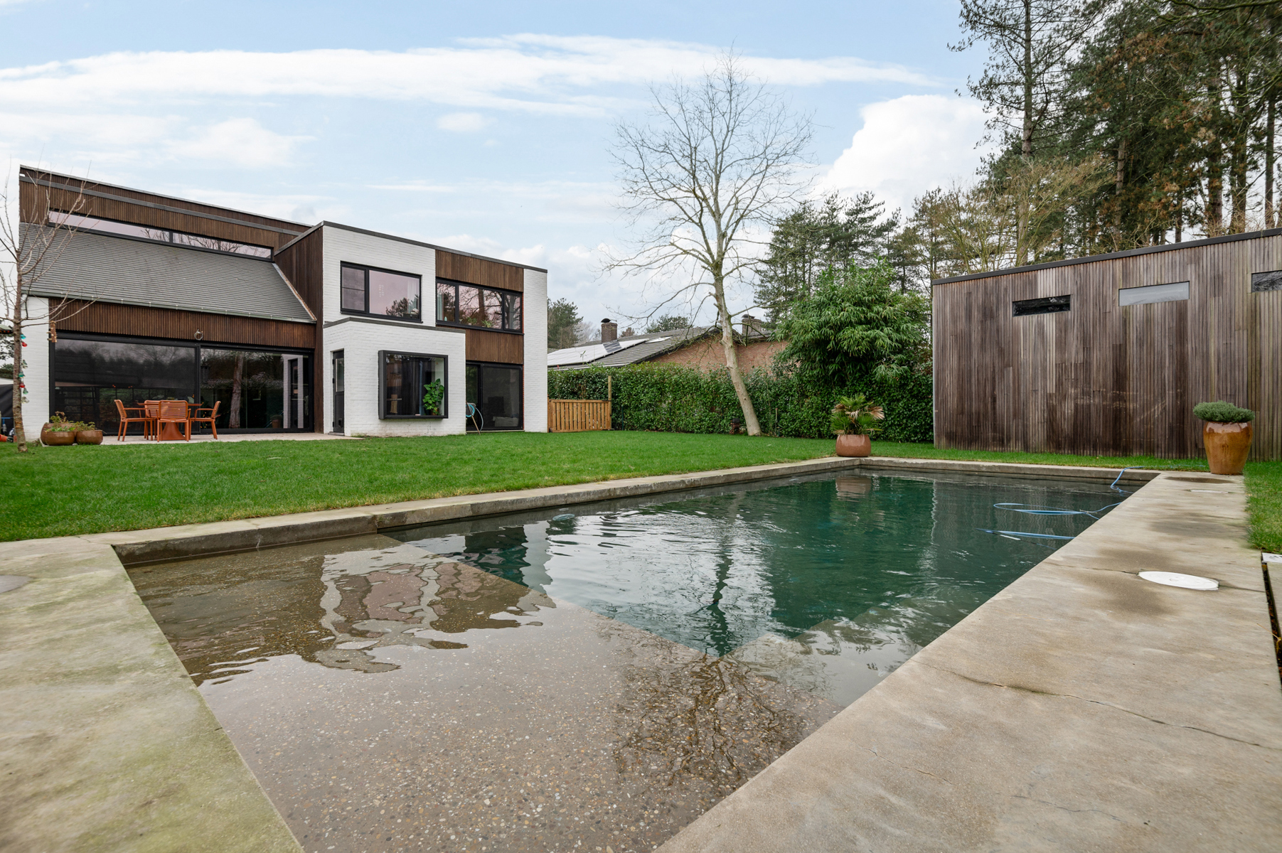 De tuin is een oase van rust met een verwarmd zoutwaterzwembad en een poolhouse met toilet. Twee terrassen nodigen uit om te genieten van zon en gezelligheid met familie en vrienden. Verder beschikt de woning over een ruime, geïsoleerde garage van 40 m².