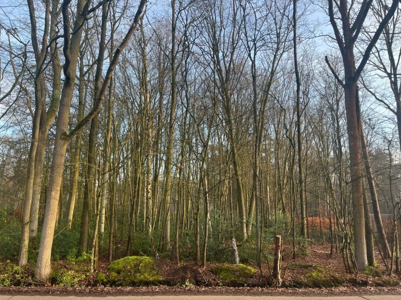 Dennenlaan te Zoersel, tussen de huisnummer 33 en 43 - mooi bebost perceel bouwgrond in woonparkgebied met een grondoppervlakte van 2.179 m2 en een breedte van 35 m.