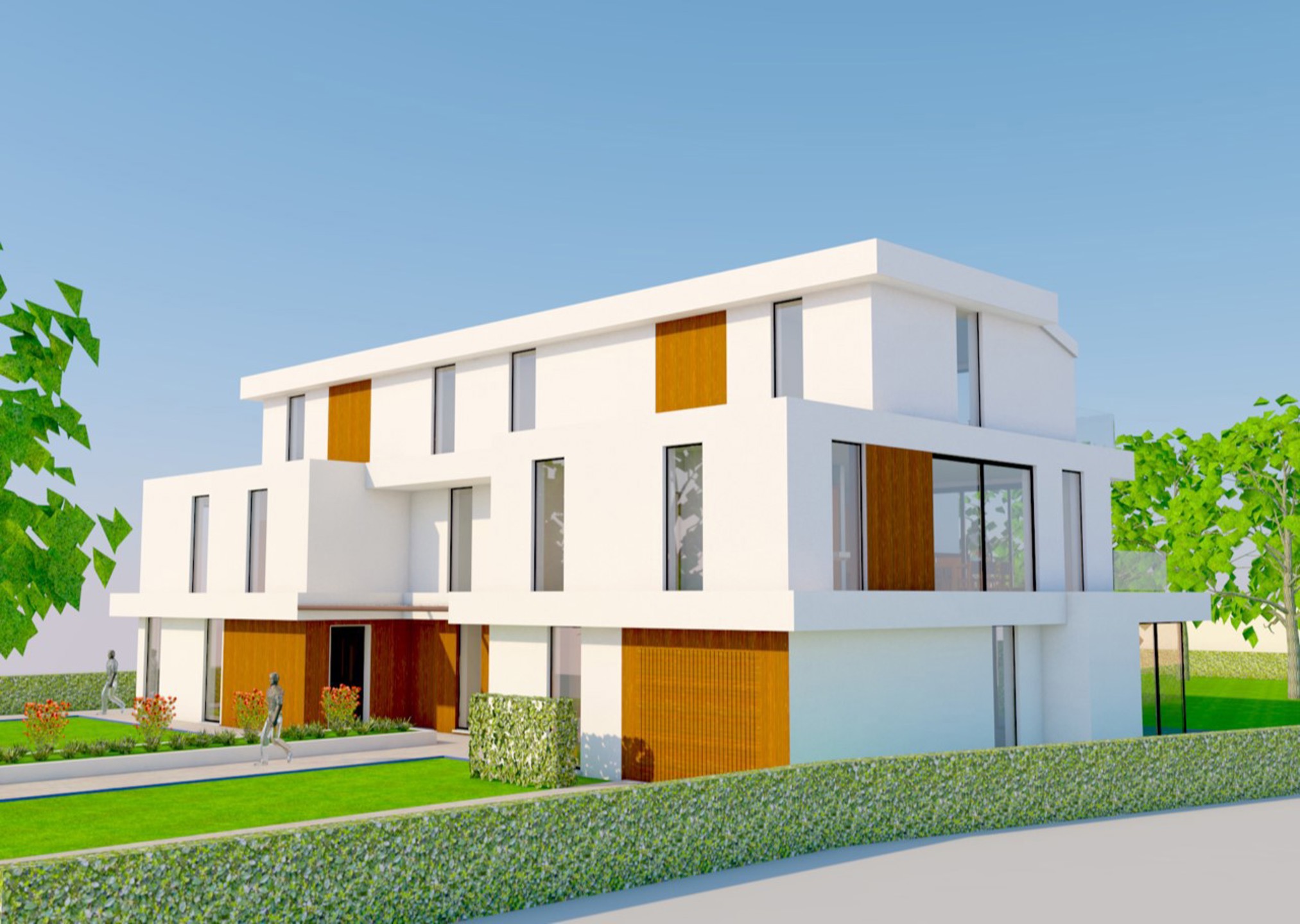 Het betreft een project van 3 gekoppelde eengezinswoningen met inpandige studie-,kantoor,- of praktijkruimte en een gemeenschappelijke ondergrondse parkeer- en bergkelder.