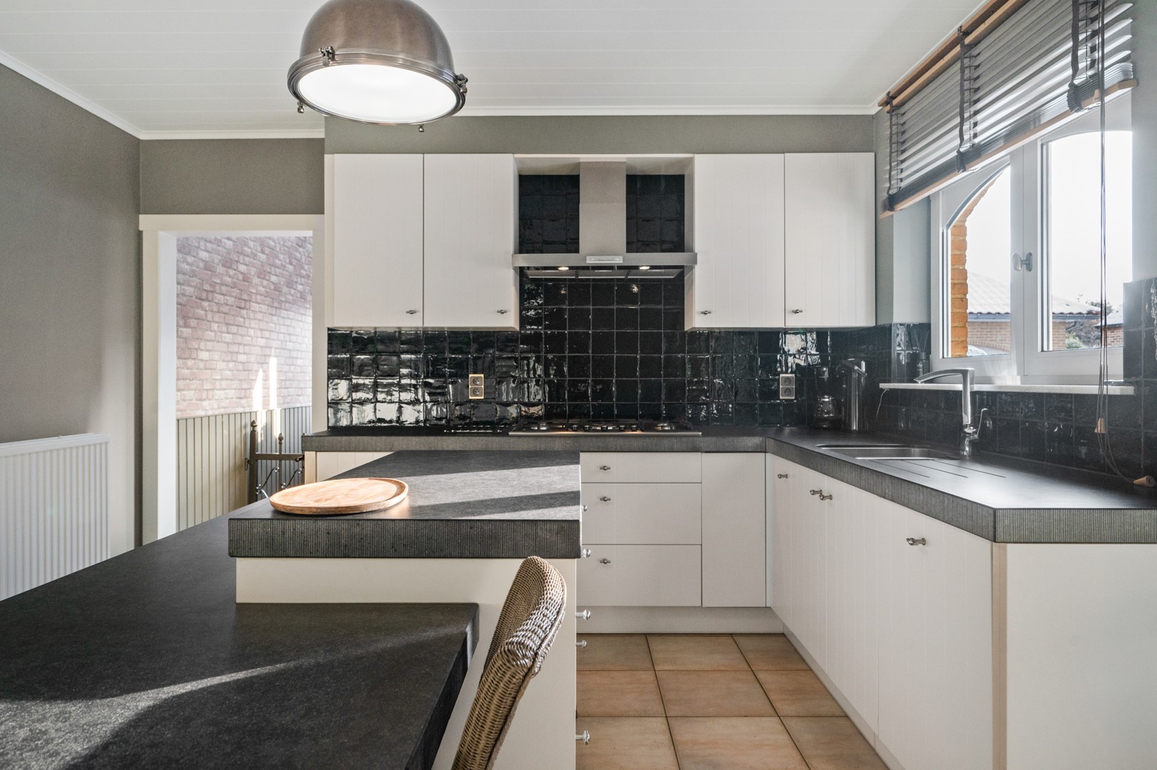 Bij het betreden van de woning komt u in een elegante inkomhal met gastentoilet en prachtige eikentrap, De open leefruimte met geïntegreerde keuken en zithoek straalt ruimte en gezelligheid uit. Aansluitend aan de keuken bevindt zich een praktische berging met rechtstreekse toegang tot de volledig onder kelderde woning en extra opbergmogelijkheden biedt. In de sfeervolle leefruimte zorgt een pelletkachel voor aangename warmte en een huiselijke ambiance. Op het gelijkvloers vindt u bovendien een functionele badkamer, een bureauruimte en een slaapkamer.