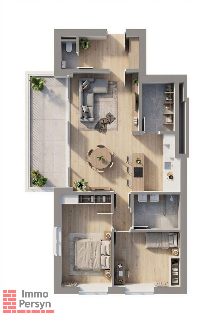 Dit 2-slaapkamer appartement werd ontworpen met oog voor ruimte en licht. Grote raampartijen brengen het buitengevoel naar binnen, terwijl de doordachte indelingen zorgen voor maximaal wooncomfort. Het appartement beschikt over een ruim terras en is afgewerkt met duurzame, hoogwaardige materialen die klasse en verfijning uitstralen.