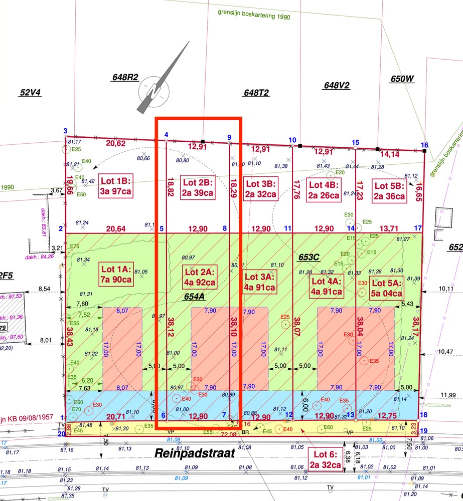 Genk, Reinpadstraat 183 (Lot 2A en 2B): uitstekend gelegen bouwgrond van 7a 31ca voor halfopen bebouwing.