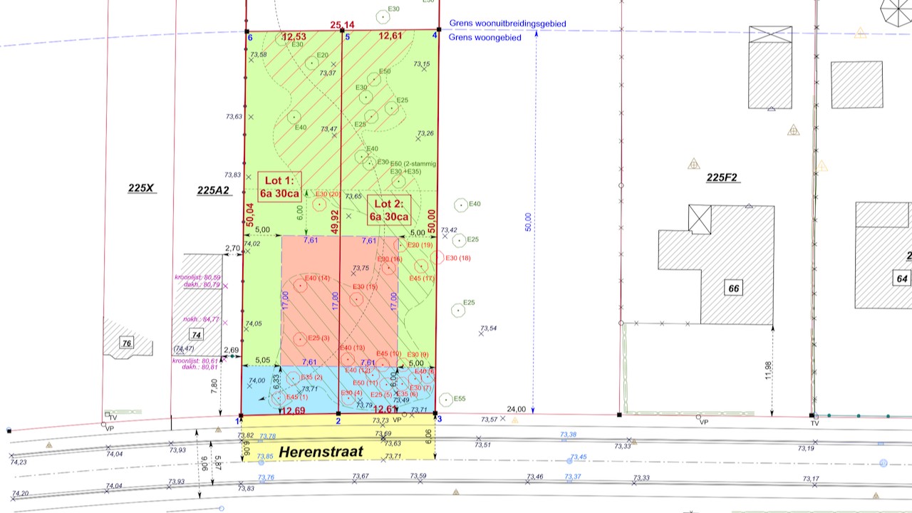 Beide percelen zijn ±50m diep en hebben een gemiddelde perceelsbreedte van 12,61m