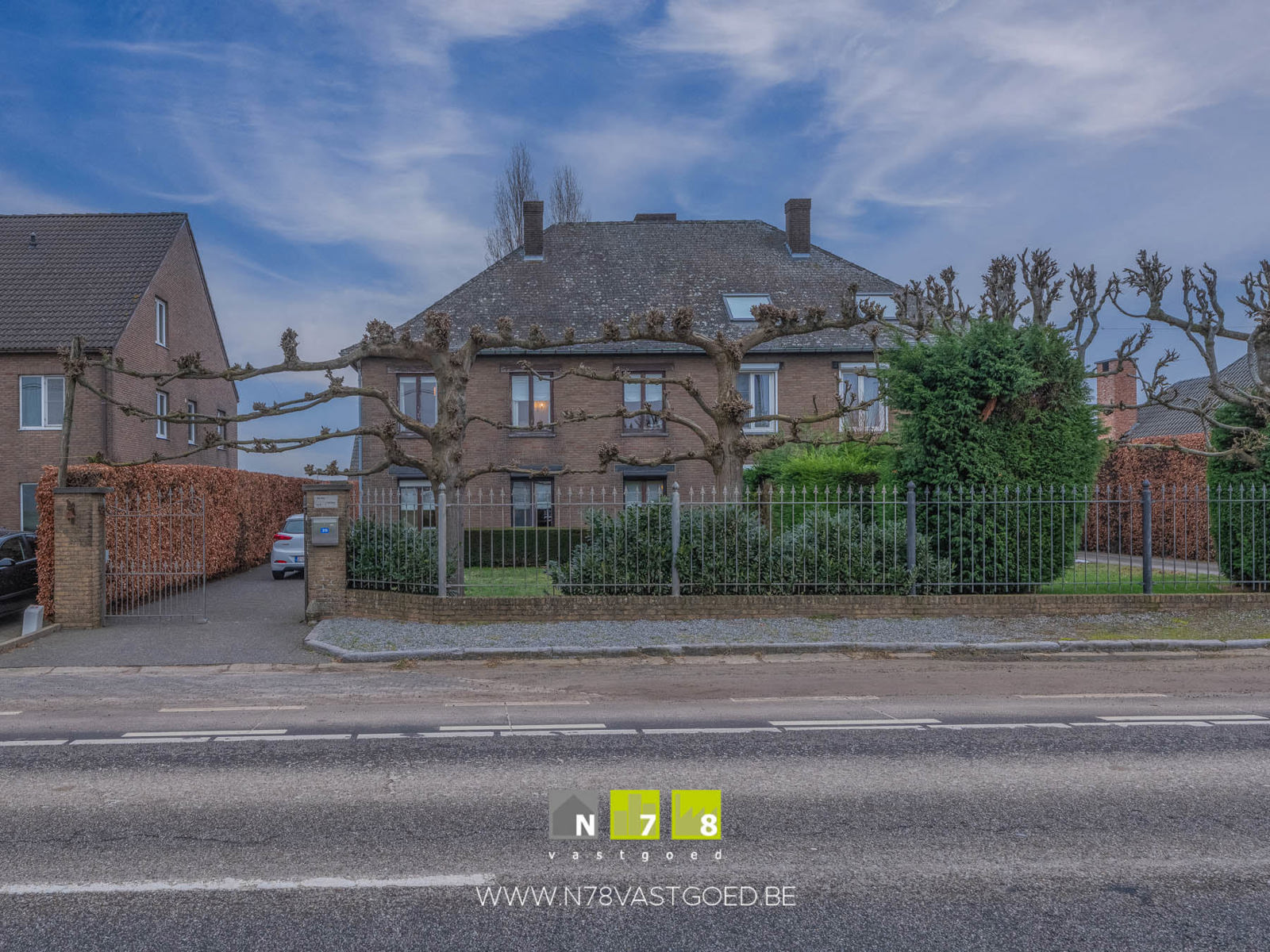 - Domein aan de voorzijde afgesloten met toegangspoort.