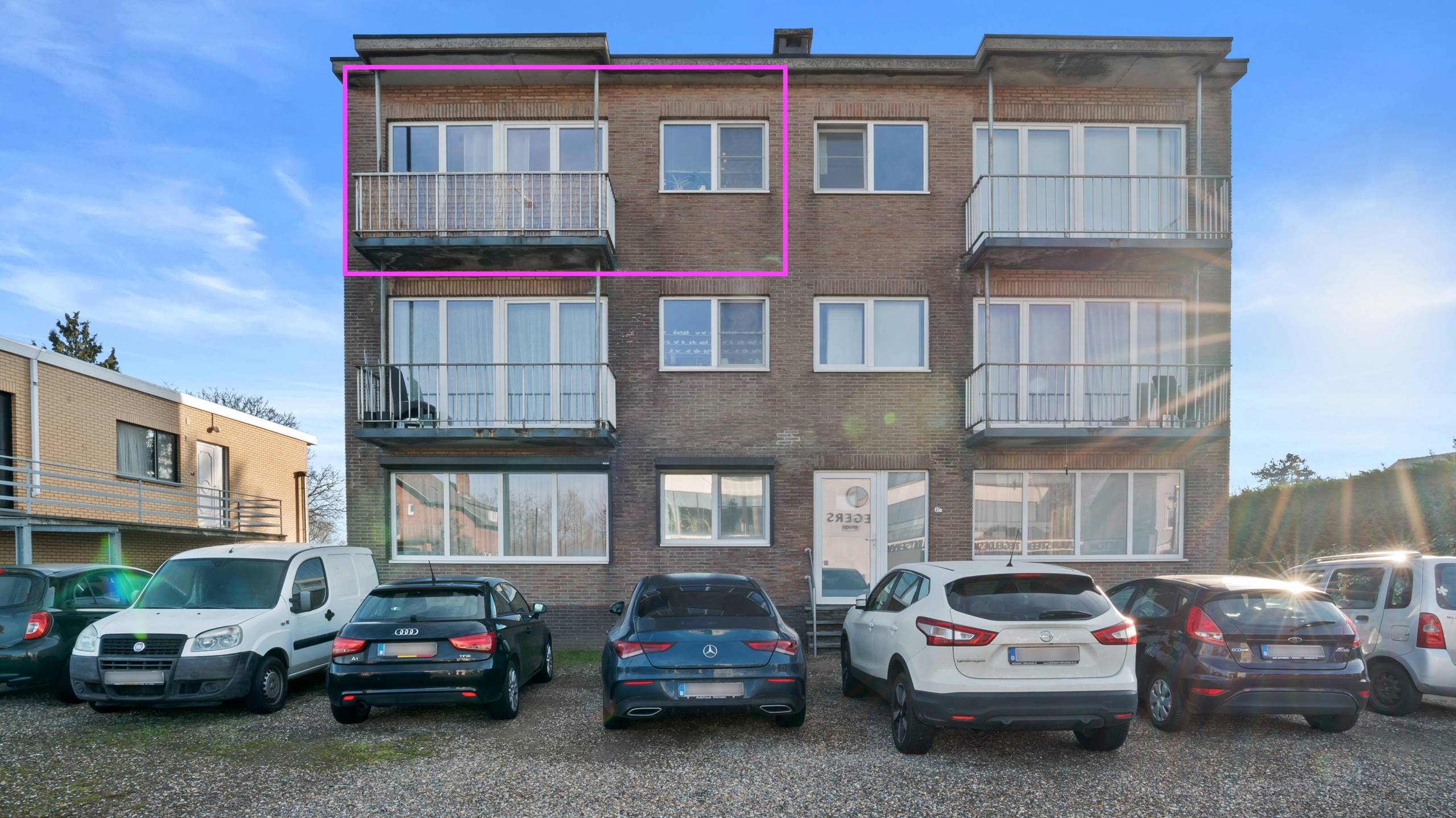 Bij het betreden van het appartement kom je in de inkomhal, die meteen toegang biedt tot een praktische berging/wasruimte. Van hieruit bereik je ook de ruime en lichtrijke leefruimte, waar grote raampartijen – deels tot op de vloer – zorgen voor een aangename lichtinval en een open gevoel. Via de leefruimte heb je rechtstreeks toegang tot het balkon, ideaal om even te genieten van de buitenlucht.