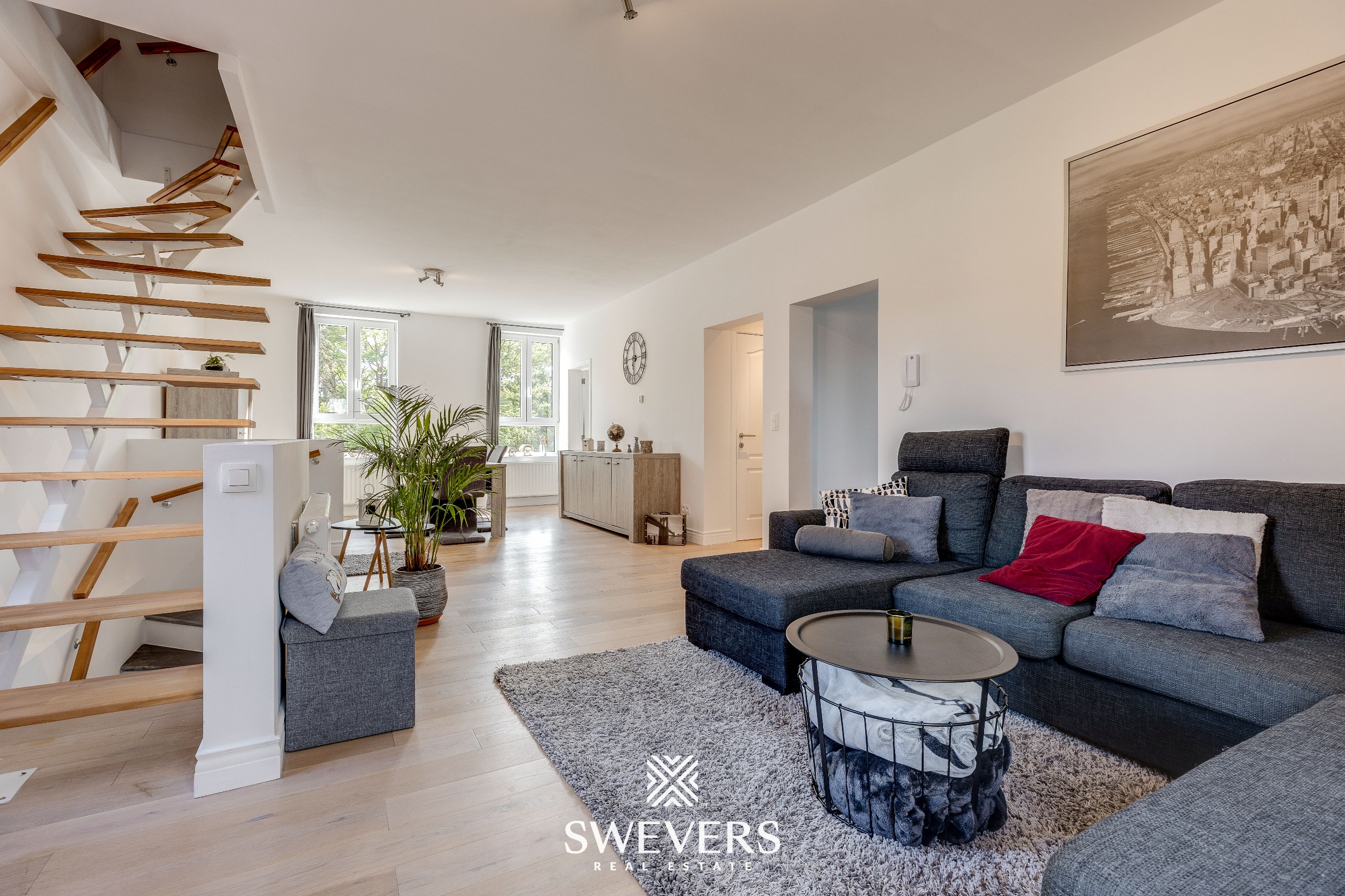 Voor meer info en foto’s, surf naar www.swevers.be – Instapklaar duplexappartement op de tweede verdieping van een kleinschalig gebouw, gelegen in de Generaal de Krahestraat 159 bus 2. Met een bewoonbare oppervlakte van 119 m² biedt dit appartement een aangename combinatie van ruimte, licht en functionaliteit. De centrale leefruimte van 35 m² vormt het hart van de woning en biedt voldoende plaats voor een zithoek en eetruimte. Dankzij de grote raampartijen geniet u hier van veel natuurlijk licht. Aansluitend bevindt zich de keuken van 13,5 m² met praktische indeling en voldoende werk- en kastruimte. Vanuit de woonkamer heeft u toegang tot het ruime terras van 25 m², een ideale plek om te ontspannen of gezellig buiten te tafelen. Op deze verdieping bevindt zich eveneens een eerste slaapkamer van 13,5 m². Verder zijn er een badkamer, wasplaats en een apart toilet aanwezig. Via de interne trap bereikt u de bovenverdieping waar de tweede slaapkamer van 23 m² is ondergebracht. Deze ruime kamer biedt tal van mogelijkheden, bijvoorbeeld als master bedroom met extra kastruimte. Daarnaast is er een praktische berging voor extra opslag en een tweede badkamer voorzien. De ligging vormt een extra troef met openbaar vervoer op 120 meter, winkels en horeca op 130 meter, scholen op ongeveer 1 kilometer en een vlotte verbinding naar de snelwegen op circa 11 kilometer. Voor meer informatie, bel 011 255 155. Bron bewoonbare oppervlakte: EPC – verslag.