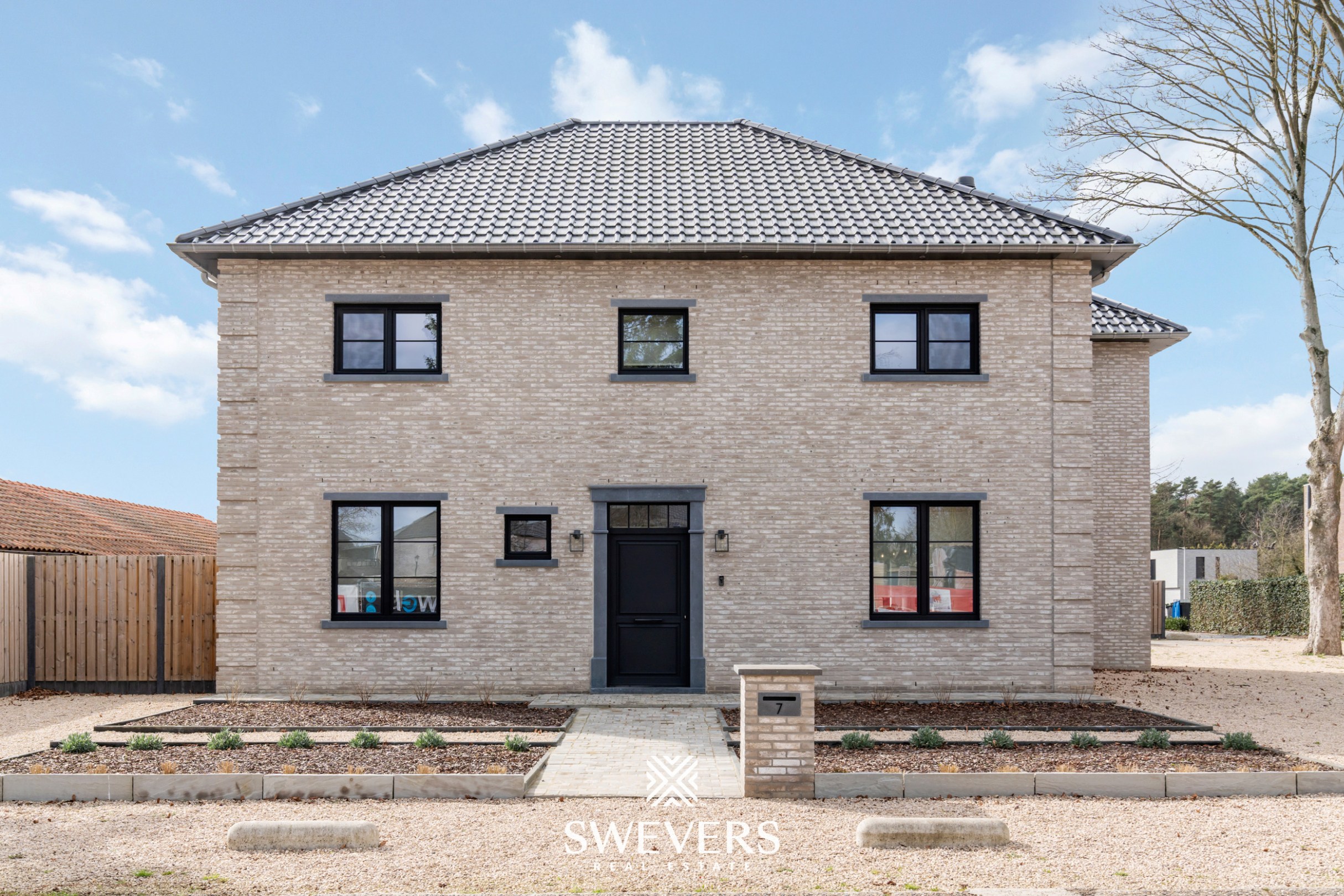 Voor meer info en foto’s, surf naar www.swevers.be – In een rustige woonomgeving in Leopoldsburg bevindt zich deze indrukwekkende open bebouwing uit 2020. Deze instapklare BEN-villa combineert hedendaagse architectuur met ruimte, comfort en een hoogwaardige afwerking. Met een bewoonbare oppervlakte van 298 m² en een perceel van 8a 26ca biedt deze woning een aangename woonbeleving met veel natuurlijk licht dankzij de grote raampartijen. Via de inkomhal betreedt u het gelijkvloers met gastentoilet en een praktische bureauruimte, ideaal voor thuiswerk. De ruime leefruimte van circa 50 m² vormt het hart van de woning en biedt plaats voor een gezellige zithoek en eetruimte. Aansluitend bevindt zich de moderne keuken van ongeveer 24 m² met kookeiland, perfect voor wie graag kookt en gasten ontvangt. Verder zijn er op dit niveau een berging en extra bergruimte aanwezig. De eerste verdieping is ingericht als slaapverdieping met vier ruime slaapkamers van ongeveer 18 m², 20 m², 22 m² en 22,5 m². Daarnaast zijn er twee badkamers en een aparte dressing voorzien, wat extra comfort biedt voor een gezin. Op de tweede verdieping bevindt zich een vijfde slaapkamer van circa 22,5 m², ideaal als logeerkamer, hobbyruimte of bureau, samen met een praktische wasruimte. Rondom de woning ligt een aangename tuin waar u in alle rust kan genieten van het buitenleven. De open bebouwing zorgt voor een ruimtelijk gevoel en extra privacy. Verder beschikt de woning over een garage. Ook de ligging is bijzonder gunstig: scholen op 120 meter, openbaar vervoer op 160 meter en winkels, restaurants en ontspanning op ongeveer 200 meter. De snelwegen zijn bereikbaar op 7,5 km. Voor meer informatie, bel 011 255 155. Bron bewoonbare oppervlakte: EPC – verslag.