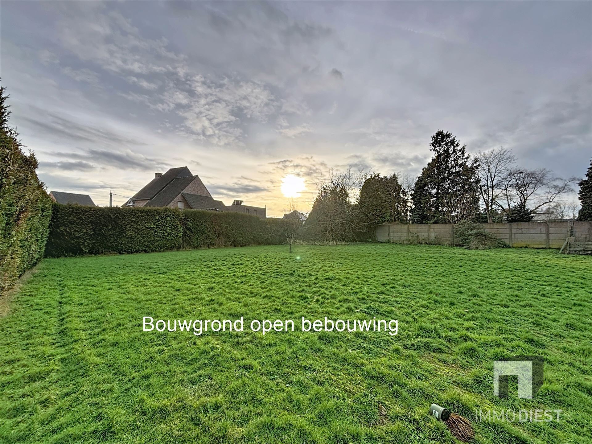 De grond is vlak en goed onderhouden, met een groot open grasoppervlak dat volledige potentie biedt voor bouwwerkzaamheden.