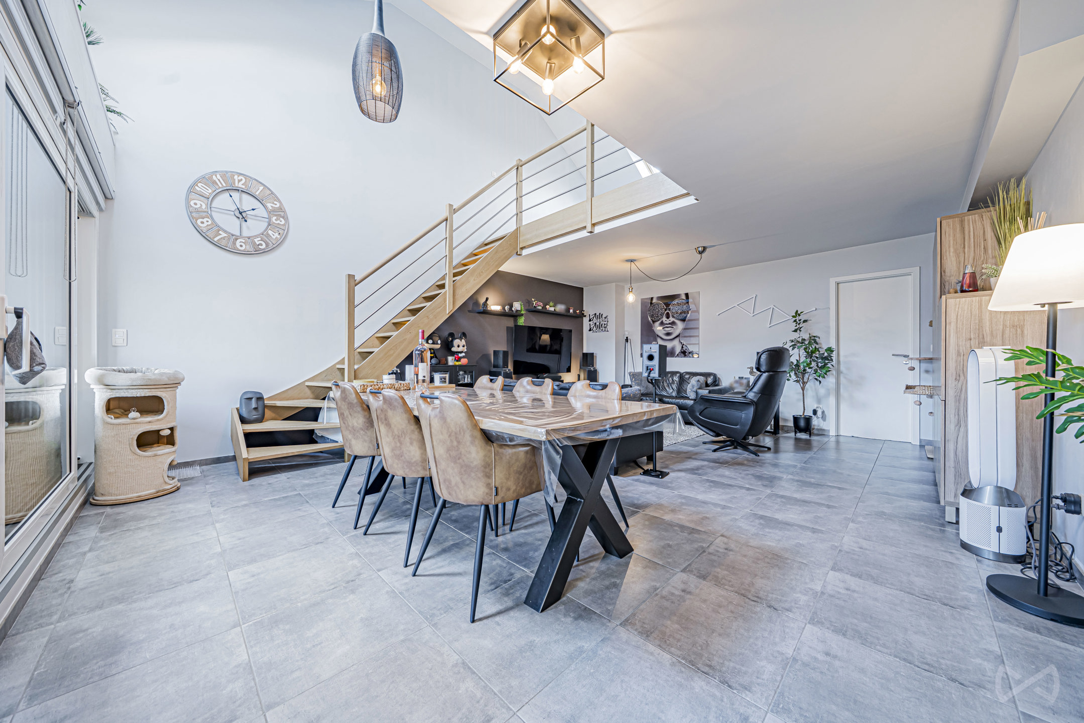 We Invest Liège et Lucas (0479/76.60.97) vous proposent à Richelle un superbe duplex alliant confort moderne et charme résidentiel. Idéalement situé dans un cadre paisible, ce bien lumineux et spacieux se distingue par ses volumes ouverts, ses finitions soignées et sa convivialité naturelle. Il se compose au 1er étage d'un hall d'entré avec WC separé, living, cuisine, buanderie, suite parental avec chambre, dressing et salle de bains (baignoire, douche et WC). A l'étage vous retrouverez un mezzanine pouvant servir de bureau, de deux chambres et d'une salle de douche (douche et WC). Deux emplacements de parking privatifs viennent compléter ce bien exclusif.