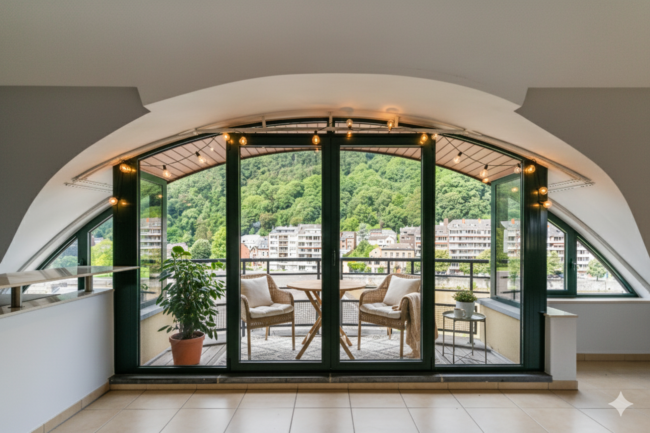 Au 5ème étage d'une copropriété, dans une rue calme donnant sur la Meuse, cet penthouse de ± 200 m² offre un cadre de vie paisible et lumineux.