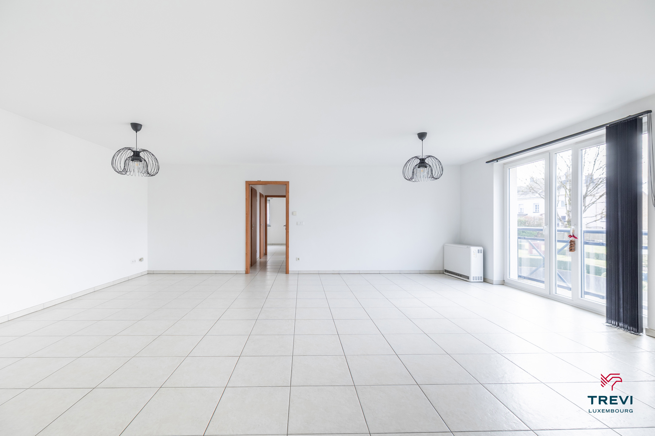 Dans une résidence calme et bien entretenue, TREVI LUXEMBOURG vous propose un appartement 3 chambres avec une très belle pièce de vie (50m2). Situé au rez-de-chaussée (niveau +1 à l’arrière) avec une orientation Sud-Ouest à l’arrière, il se compose comme suit : hall d’entrée, pièce de vie avec espace ouvert salle manger/salon/cuisine équipée, hall de nuit, 3 chambres (15m2, 12m2 et 3ème chambre/bureau 7,2m2), salle de bains, wc indépendant et buanderie. Équipements : chauffage électrique, électricité conforme (2032), détecteur incendie, parlophone. Un emplacement de parking extérieur avec jouissance privative (N°2) + un parking intérieur (N°6) et cave privative (N°17) sont inclus dans le prix. PEB D. A proximité immédiate du centre d’Habay-la-Neuve et des axes de circulation. Renseignements, plan et visites sur rendez-vous avec l’agence +32 63 229 269 - info@treviluxembourg.be