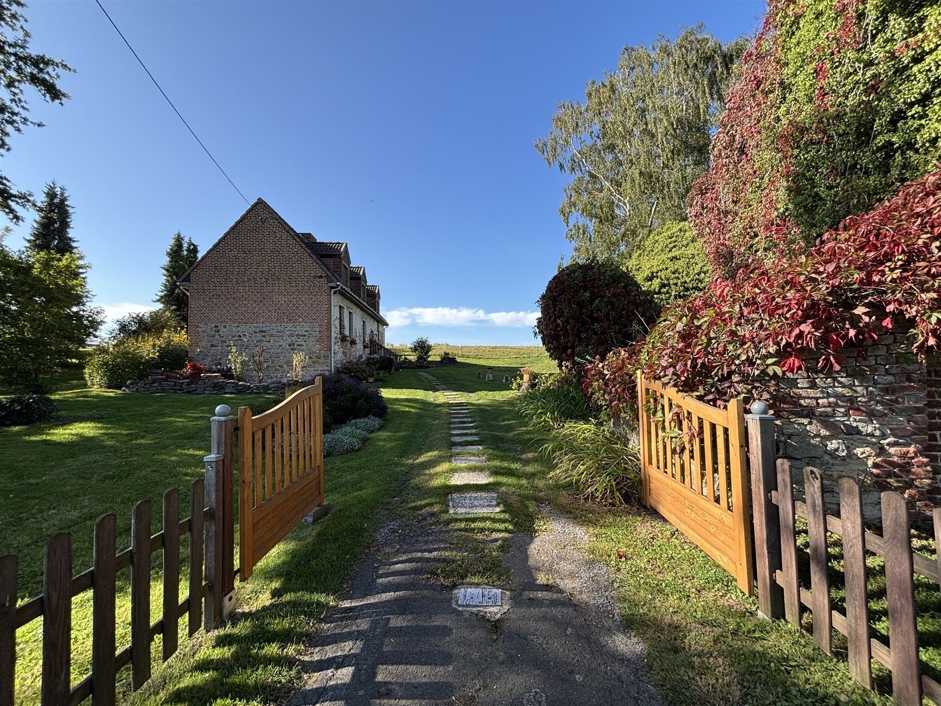 SOUS OPTION Dans la jolie campagne sonégienne, à quelques minutes du centre de Soignies, une magnifique propriété de charme et une vaste grange authentique. La fermette se compose d'un hall d'entrée carrelé accueillant de 7 m² avec toilette invités, vers la salle à manger de 23 m² chaleureuse sous plancher stratifié équipée d'un poêle à pellets. Belle et lumineuse cuisine de 17 m² vers la terrasse et le joli jardin. En léger contrebas, un salon cosy de 24 m² sous plafond avec ses poutres apparentes. A l'étage, un hall de nuit de 7 m² distribue deux grandes chambres , la première de 25 m² facilement divisible en 2 et l'autre de 18 m² et une salle de douche e 12 m² avec meuble double vasques. Une petite cave d'appoint voutée de 12 m² accueille la chaufferie. Un peu à l'écart, une magnifique grange pleine de potentiel et de projets; elle fait 128 m² avec ses 9,7 m au faite. Double vitrage bois. CC au gaz. Cave. PEB E. Poêle à pellets. Faire offre à partir de 345.000€. Infos et visites au 02/355.50.55.