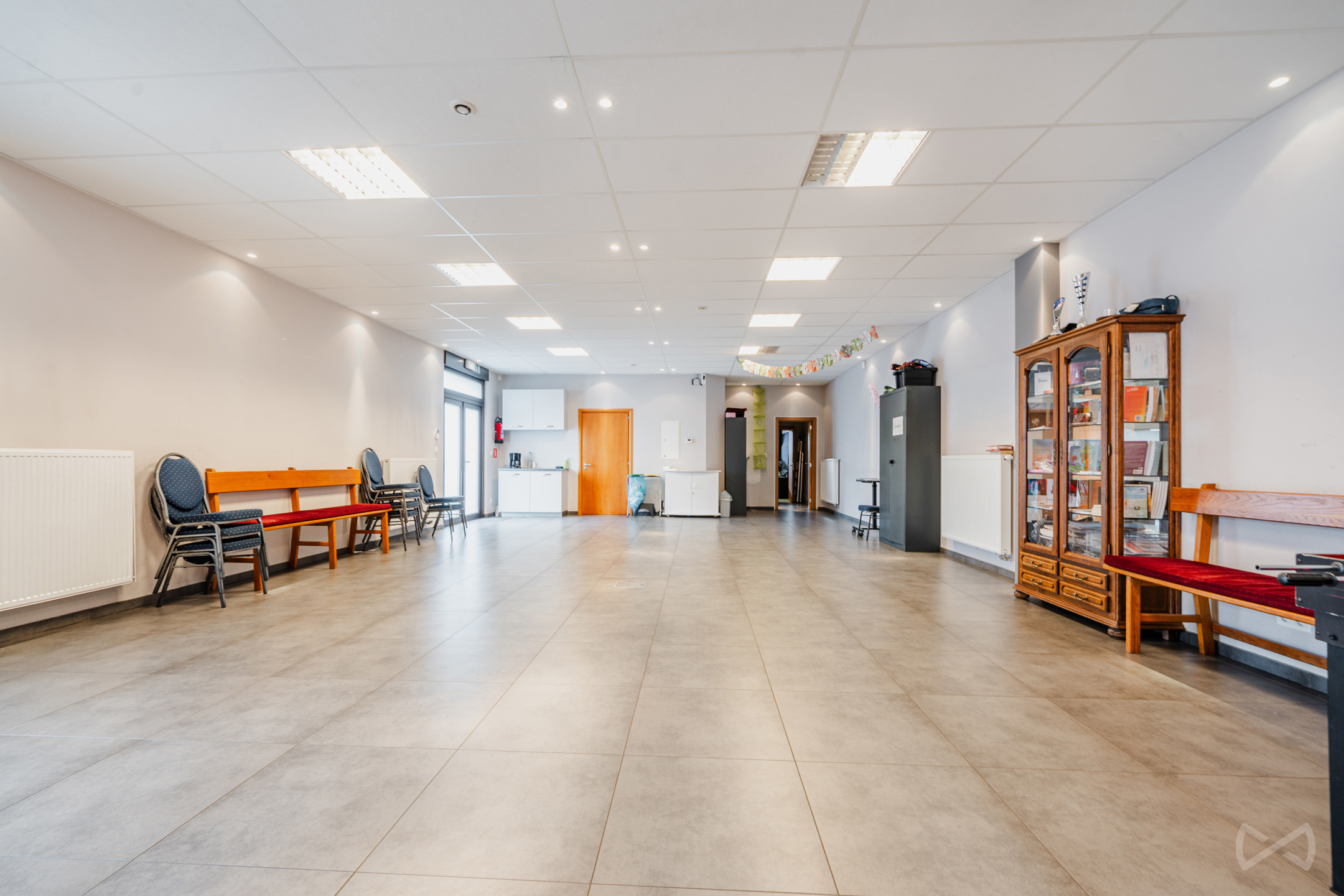 Le bien comprend également quatre grandes salles polyvalentes, un plateau brut d’environ 180 m² à l’étage ainsi qu’une cave carrelée avec chaufferie et espace technique.