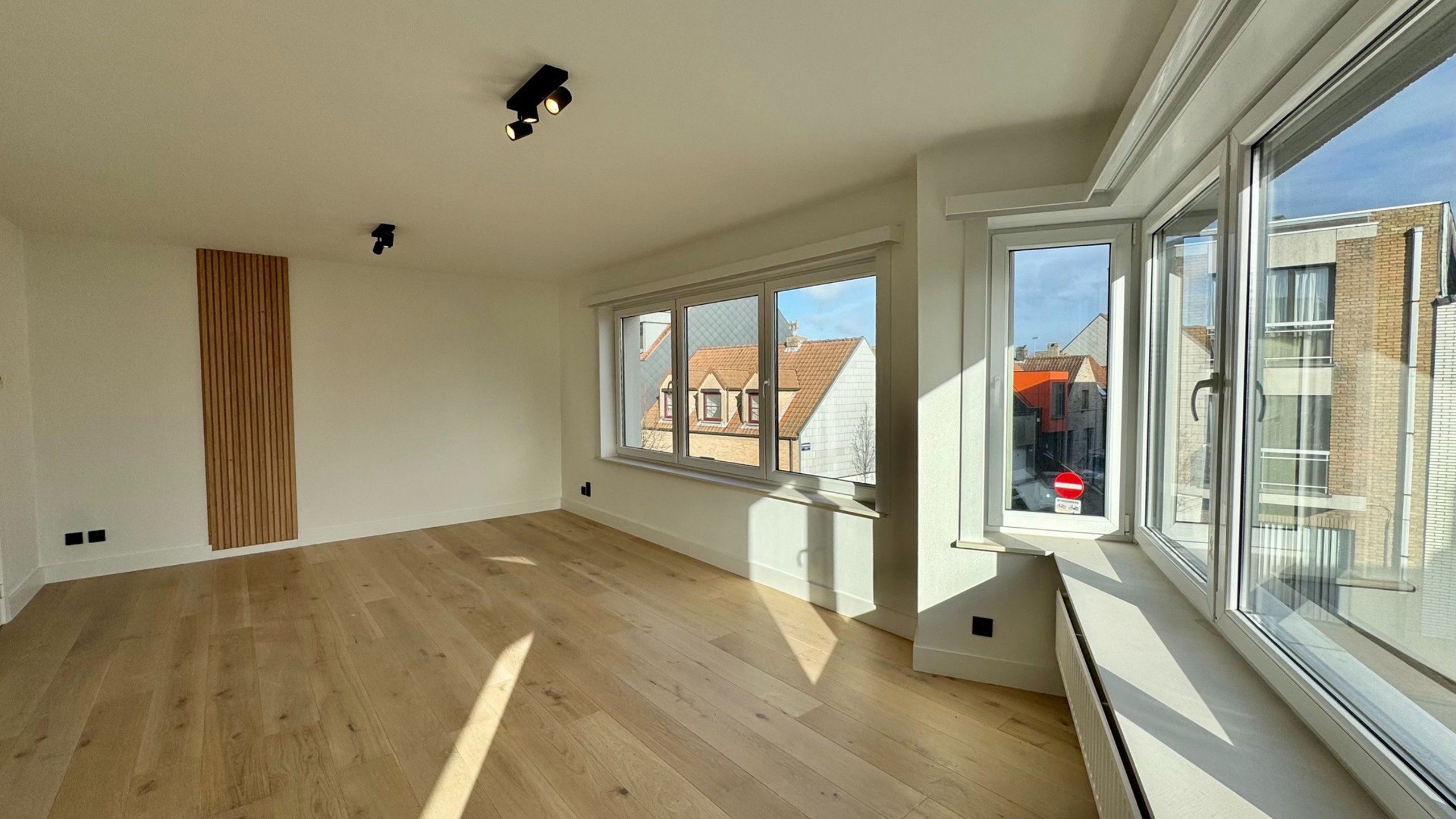 Agréable appartement de coin rénové et lumineux à quelques pas du centre de Knokke. Hall d'entrée. Salon et salle à manger spacieux avec cuisine semi-ouverte équipée de tous les appareils électroménagers (avec lave-linge/sèche-linge combiné). Débarras. 2 chambres à coucher de taille normale. Salle de bains (douche, lavabo et toilettes). Possibilité d'acheter une place de parking dans la résidence. Petite copropriété.