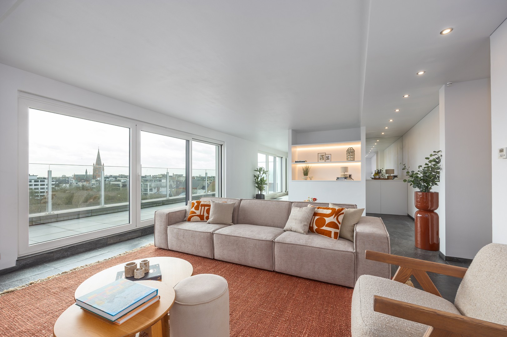 Dans la résidence de standing Park House, située dans la Karel Janssenslaan, se trouve ce spacieux penthouse au 8ème étage. L’appartement dispose de grandes terrasses à l’avant et à l’arrière et bénéficie d’une vue dégagée sur le parc.