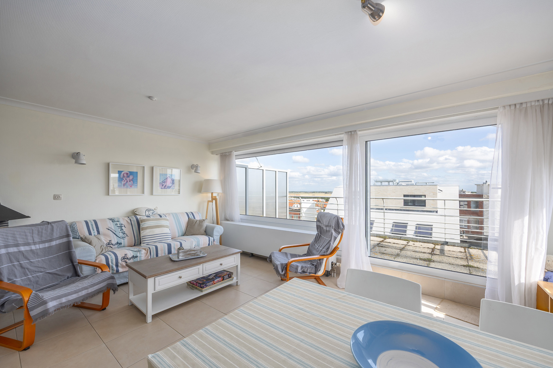 Résidence SUN VALLEY : Au 5ème étage, appartement penthouse prêt à emménager avec 3 chambres à coucher et grande terrasse ensoleillée. Vous êtes à la recherche d’un appartement penthouse spacieux et lumineux avec une grande terrasse ? Cet agréable appartement mérite assurément une visite. L’appartement dispose d’un séjour spacieux et baigné de lumière naturelle, avec un coin salon convivial attenant à la salle à manger. Depuis le séjour, vous accédez directement à la grande terrasse ensoleillée, où vous pourrez profiter en toute tranquillité de l’air extérieur et de la vue dégagée – idéale pour se détendre ou recevoir des invités. La cuisine fonctionnelle est aménagée de manière pratique et est en lien direct avec l’espace de vie. L’appartement comprend trois chambres à part entière, dont une avec terrasse, ce qui le rend parfaitement adapté comme habitation familiale, résidence secondaire ou investissement. La salle de bains est équipée d’une baignoire et d’un meuble lavabo, tandis que les toilettes séparées offrent un confort supplémentaire. Grâce à sa situation au dernier étage, vous bénéficiez d’une intimité et d’un calme appréciables. L’agencement est logique et confortable, avec suffisamment d’espaces de rangement et une atmosphère agréable dans tout l’appartement. Résidence disposant d’un local à vélos et idéalement située à proximité de la digue, des commerces et des transports en commun. La façade arrière a été rénovée et isolée en 2025.