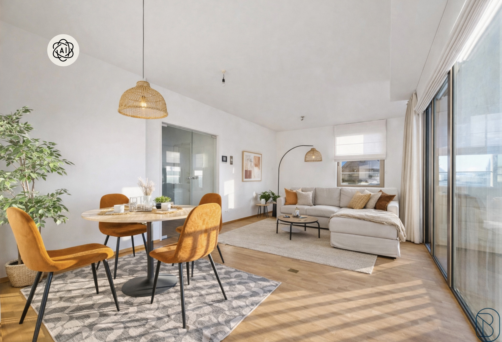 APPARTEMENT HAUT SITUE avec 2 chambres et une belle TERRASSE ENSOLEILLEE avec une belle VUE sur la verdure et le Veemarkt. Situé en plein centre de KORTRIJK dans une RESIDENCE recherchée ! DESCRIPTION : entrée avec toilettes séparées, grand séjour lumineux (beau parquet, hauts plafonds, grandes fenêtres), cuisine équipée avec débarras pratique adjacent, hall de nuit, grande salle de bain (double lavabo, baignoire et toilettes) et 2 chambres spacieuses. Il y a également une pièce de rangement pratique au sous-sol. APPARTEMENT QUALITATIF et lumineux ! TROEVEN : double vitrage alu, chauffage au gaz par le sol, étage élevé, DOMOTICA, SITUATION CENTRALE. Visite sur rendez-vous avec IMMO BEGUIN : 0486/606.600