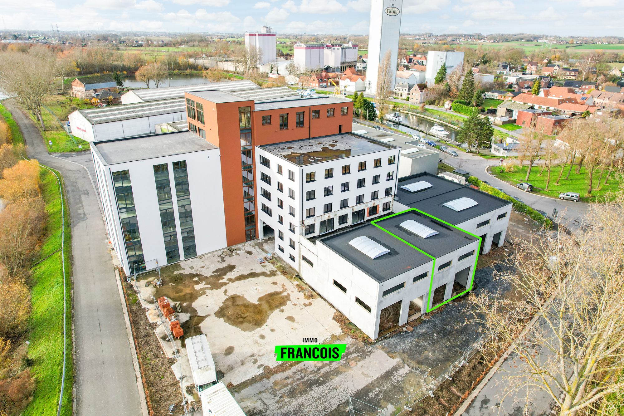 Deze ruime en functionele loods beschikt over een totale oppervlakte van 351 m², verdeeld over twee niveaus. Het gelijkvloers omvat een open loodsruimte van 242 m² met een vrije hoogte van 4,70 m en biedt de mogelijkheid tot het voorzien van twee sectionale poorten van 4,00 m breed op 4,20 m hoog.