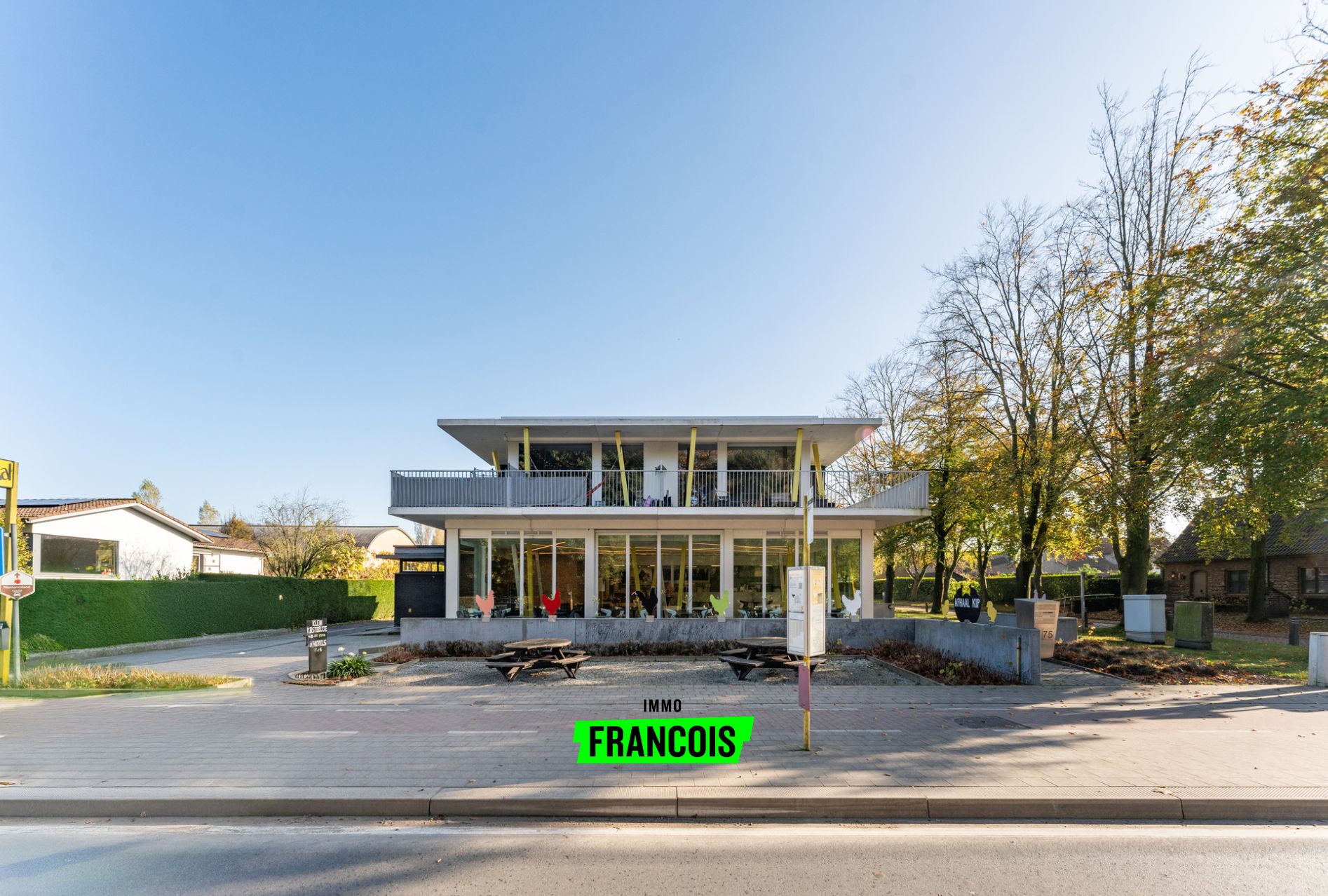 De handelsruimte op het gelijkvloers is momenteel ingericht als frituur/eethuis met professionele keuken. Binnen zijn er 75 zitplaatsen, op het terras nog eens 70.