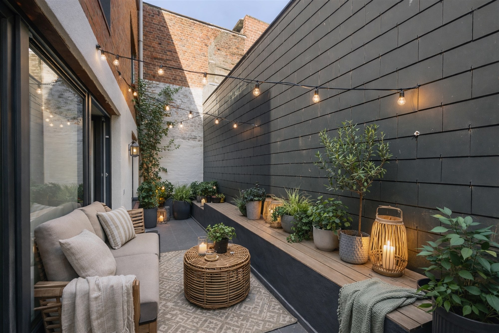 De leefruimte biedt voldoende plaats voor een zithoek en eetplaats en biedt toegang tot het grote terras.