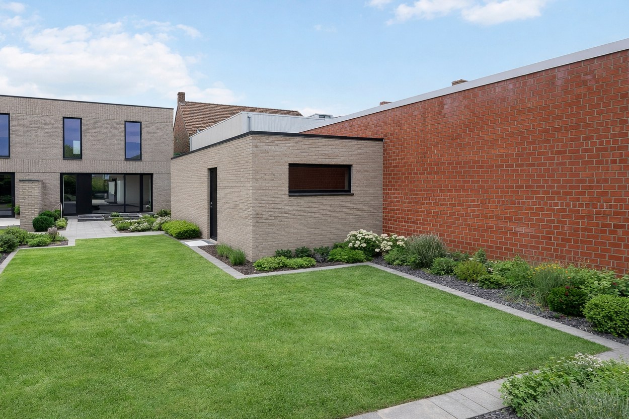 De ligging is een absolute troef: vlak bij school, bakker, slager, winkels en openbaar vervoer – alles wat u nodig heeft binnen handbereik. De woning werd ontworpen door architect Steven De Jaeghere, die bekend staat om zijn moderne en functionele architectuur.
