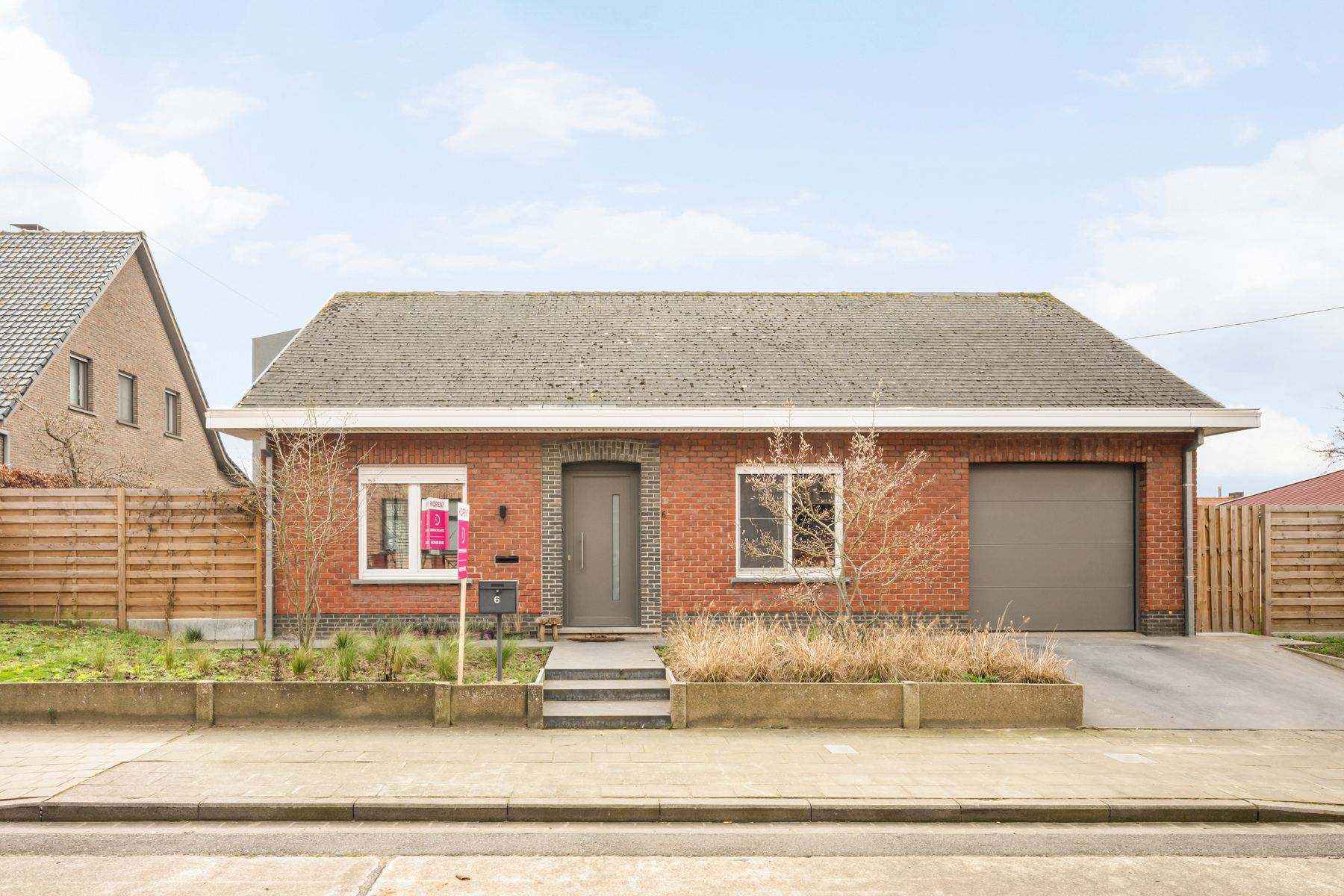 De indeling op de gelijkvloerse verdieping is als volgt: inkomhal, slaapkamer, lichtrijke leefruimte met open keuken, berging, inpandige garage, wasplaats, gastentoilet en zonnige tuin.