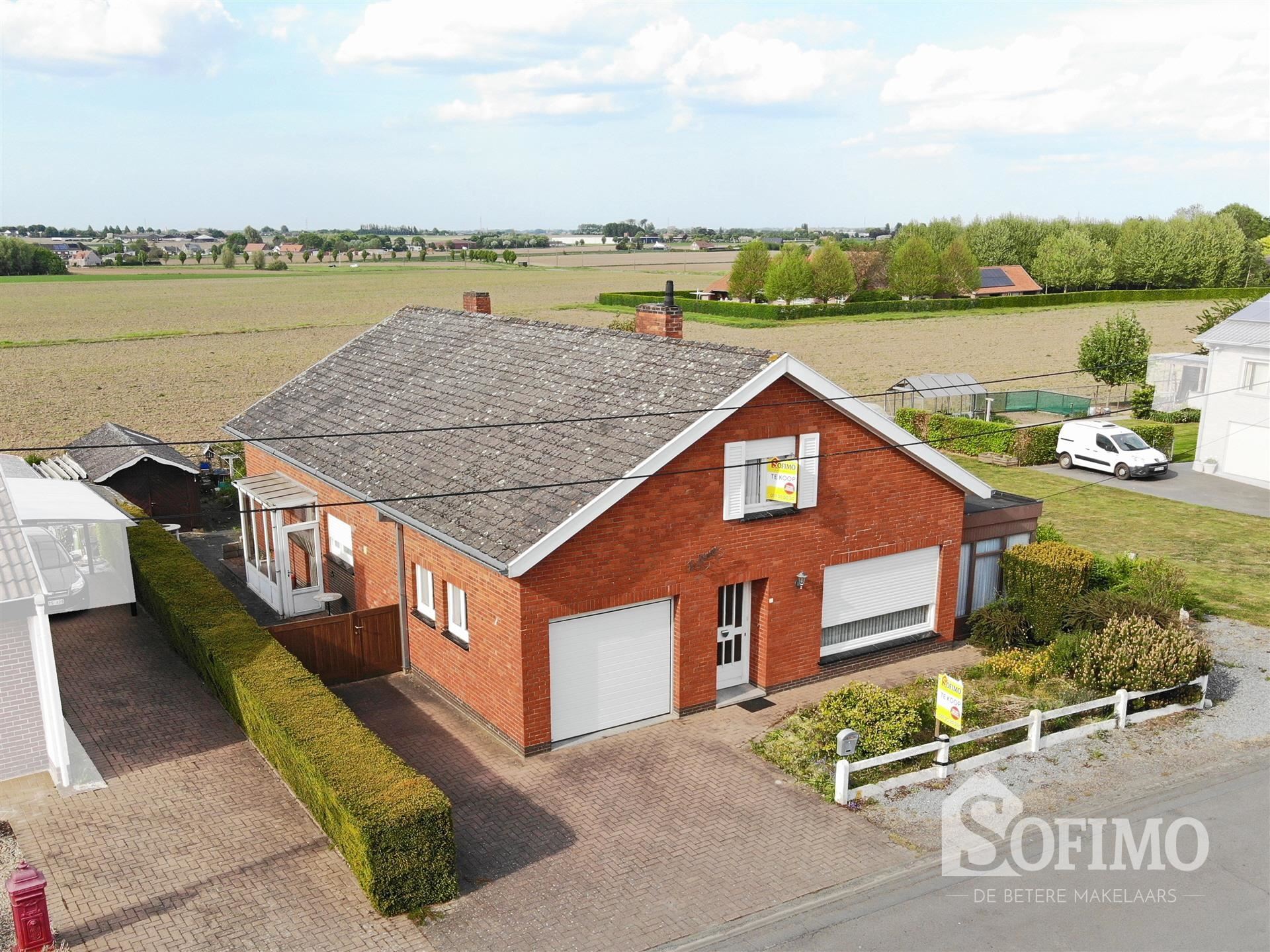 Gelijkvloers: Ruime inkomhal, lichte leefruimte met veranda, ingerichte keuken, 3 slaapkamers, badkamer (bad, lavabo, bidet) en apart toilet. Inpandige garage met automatische poort en een droge kelder.