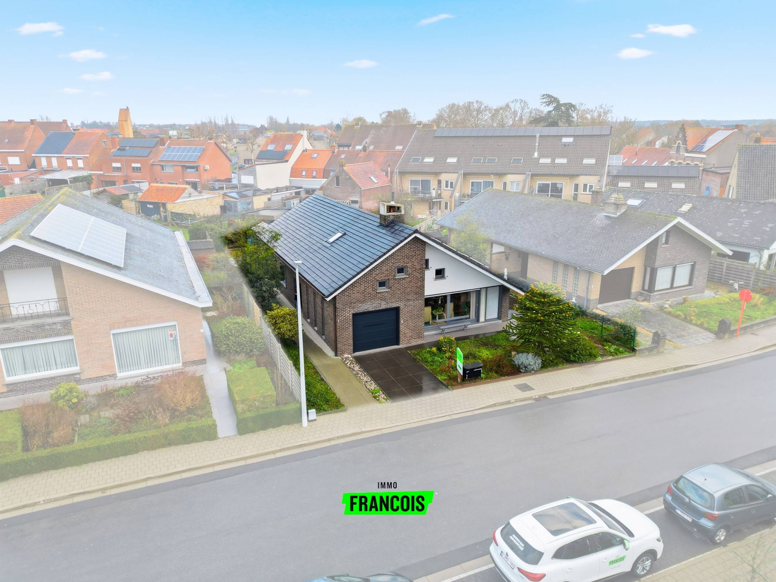 In Poperinge, gelegen in een rustige straat, op 400m van de Grote Markt bevindt zich deze bungalow woonst. Deze woning is stevig gebouwd in de jaren 70 en beschikt alreeds over een volledig nieuw geïsoleerd dak, met grote veluxen. Ook zijn er zonnepanelen met groenestroomcertificaten én een thuisbatterij! Deze ruime gezinswoning heeft zowel kamers beneden als boven. De indeling gaat als volgt: Op het gelijkvloers heb je een inkomhal met gastentoilet, lichtrijke woonkamer, keuken met aansluitend berging en wasplaats. Verder ga je naar de gang met 3 kamers en een badkamer. Ook heb je een garage met een automatische garagepoort. Op het 1e verdiep heb je de nachthal met ingemaakte kasten en verder nog 3 ruime tot zeer grote slaapkamers. Je hebt er ook 1 toilet in een kamer. De totale oppervlakte bedraagt 601m², de tuin bevindt zich aan de zijkant en aan de achterkant van de woonst!