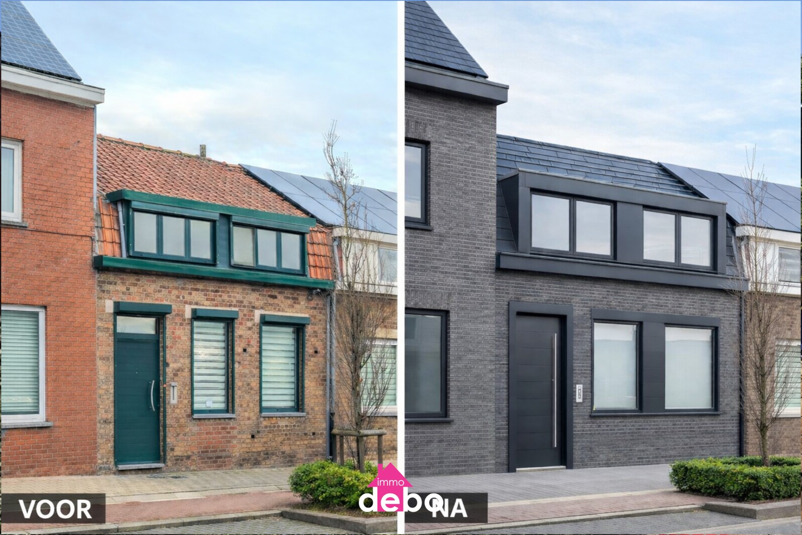 Aluminium ramen en deuren aan de voorgevel, bovenverdieping en keuken
