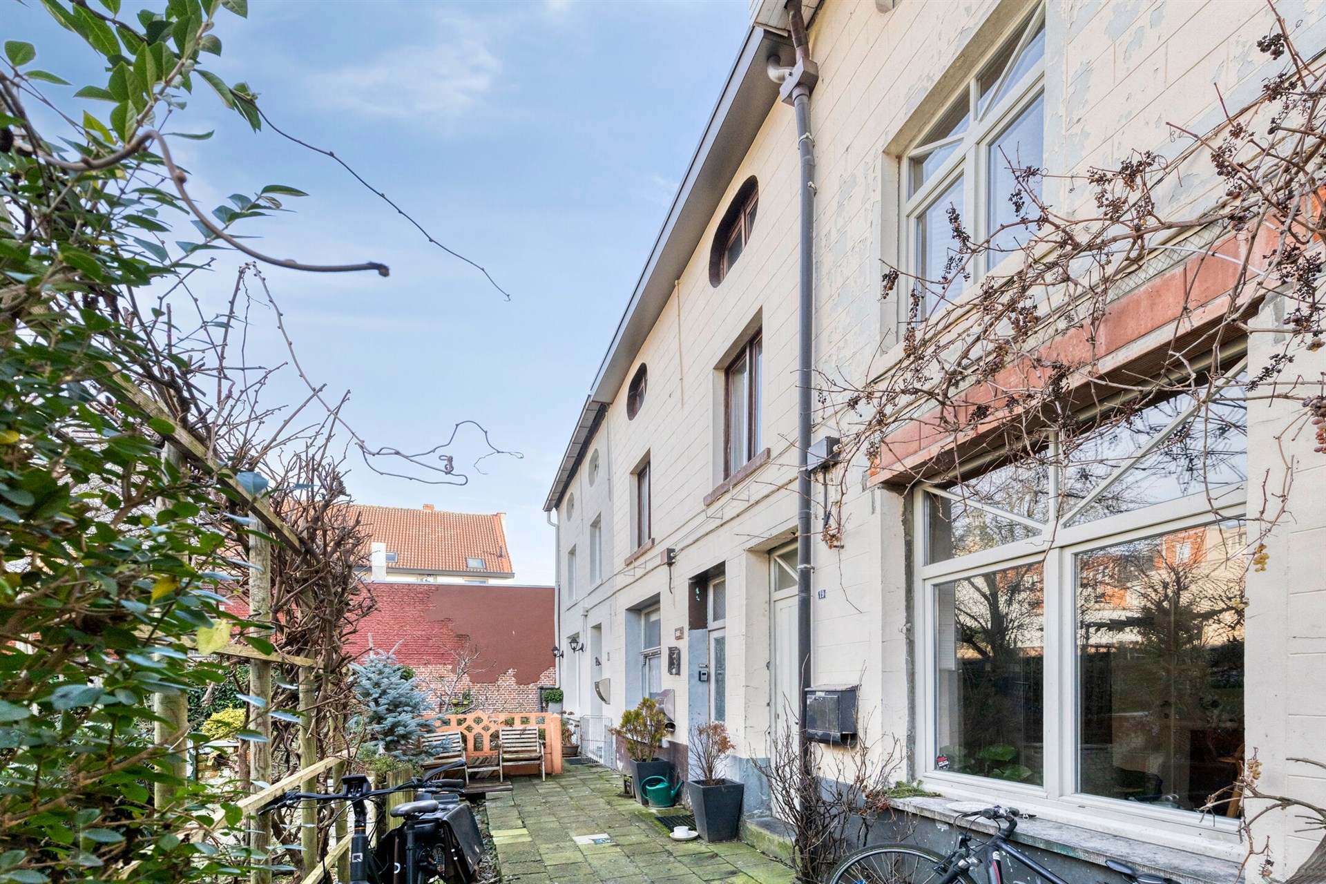 La maison fait partie de the square-built Jongeshof, où des personnes ont converti l'ancienne brasserie et les écuries du 18e siècle en six maisons avec des jardins privés vers 1900. L'une de ces maisons est aujourd'hui à vendre et l'on accède à par un chemin privé couvert. Cette propriété est cachée dans le centre de Rupelmonde, ce qui signifie que vous êtes toujours à distance de marche de tout ce que ce beau village a à offrir.