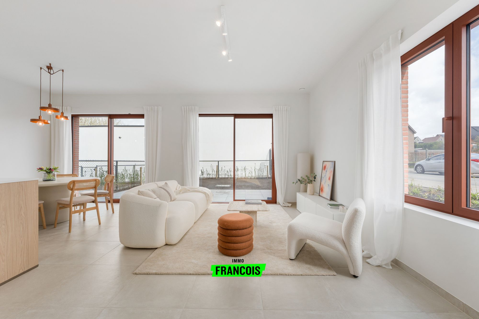 Instapklare en volledig afgewerkte halfopen nieuwbouwwoning in Eilandpark te Sint-Lievens-Houtem. In het recente woonproject Eilandpark bevindt zich deze smaakvol afgewerkte woning, gelegen op een rustige en tegelijk zeer gunstige locatie. U woont hier in een groene omgeving met een vlotte verbinding naar het centrum en omliggende gemeenten. De woning werd tot in de puntjes afgewerkt en is volledig instapklaar: ze werd geschilderd, voorzien van verlichting en afgewerkt met raamdecoratie, waardoor u onmiddellijk kan genieten zonder bijkomende werken.