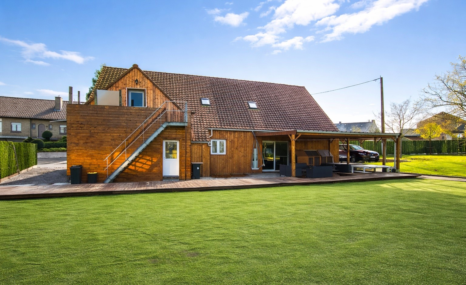 ZAT 4/4 — BEZOEKDAG OP AFSPRAAK 0488 85 81 84 In het landelijke Roborst, een deelgemeente van Zwalm in de prachtige Vlaamse Ardennen, bevindt zich deze ruime en volledig gerenoveerde woning op een perceel van 1.143 m². Dankzij de grondige renovatie in 2021 geniet de woning van hedendaags wooncomfort en een doordachte indeling met tal van mogelijkheden, waaronder kangoeroewonen of een zorgwoning. De woning is bovendien officieel vergund als zorgwoning, wat extra flexibiliteit biedt voor wie samen wil wonen met familie of zorgbehoevenden. Bij het betreden van de woning komt u in de inkomhal met trap. Op het gelijkvloers bevindt zich een ruime leefruimte, een volledig uitgeruste keuken, een badkamer met ligbad, douche en toilet en drie slaapkamers. Daarnaast is er nog een praktische berging. De verdieping beschikt over een tweede leefruimte, een tweede volledig ingerichte keuken, een badkamer en twee bijkomende slaapkamers, waardoor de woning perfect geschikt is voor dubbele bewoning. Buiten geniet u van een ruim terras van 73 m² met zuidwestelijke oriëntatie, een grote tuin, een carport voor twee wagens en nog meerdere parkeerplaatsen. Extra troef zijn de 27 zonnepanelen, die bijdragen aan een lagere energiefactuur en een energiezuinig karakter van de woning. Bent u op zoek naar een ruime, instapklare woning met veel mogelijkheden in een rustige en groene omgeving in de Vlaamse Ardennen? Dan is dit pand beslist een bezoek waard. Voor meer inlichtingen of een afspraak op de kijkdag