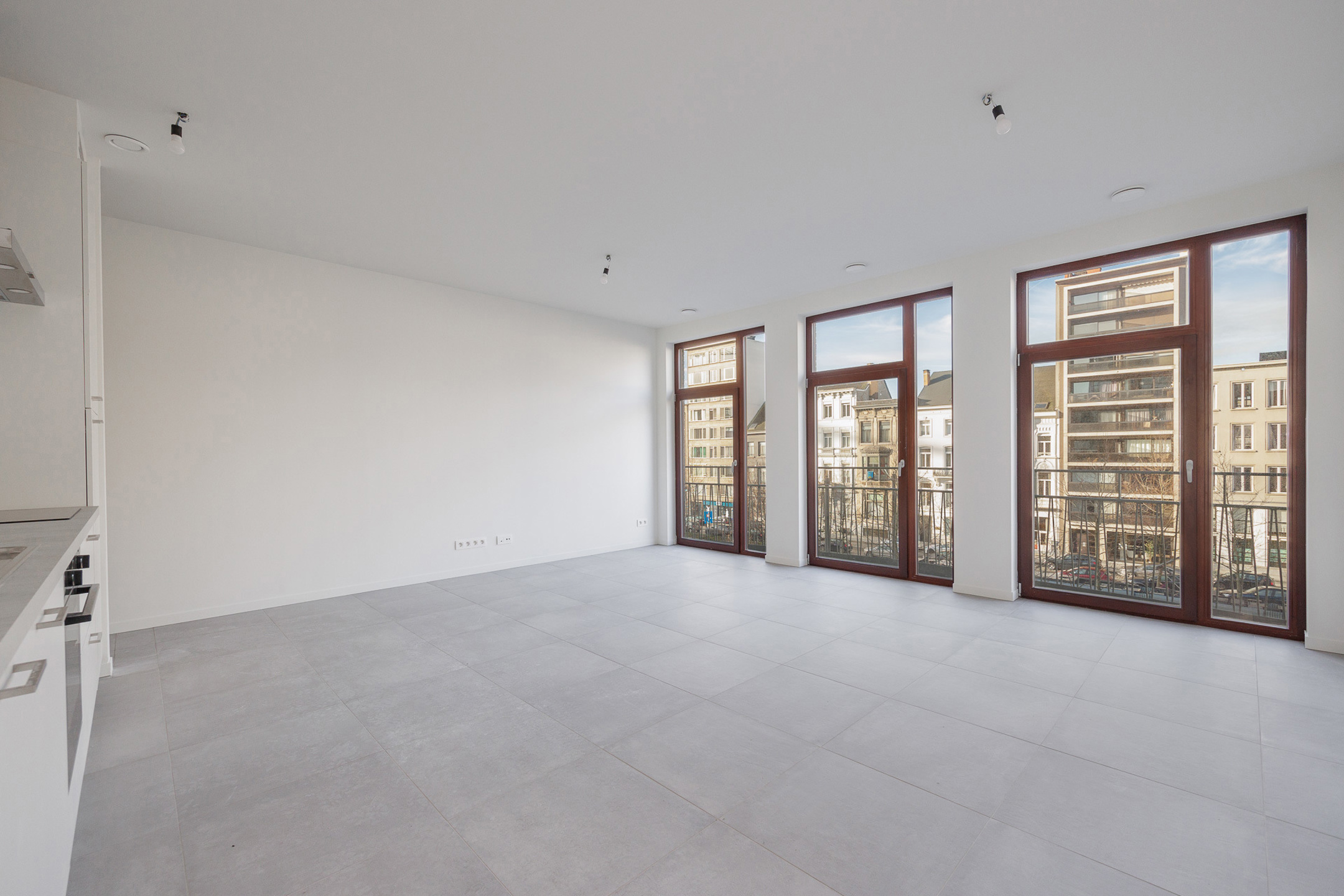 Gelegen op de derde verdieping van het gebouw, betreed je dit appartement via een ruime leefruimte met een open keuken. De grote ramen zorgen hier voor veel natuurlijke lichtinval.