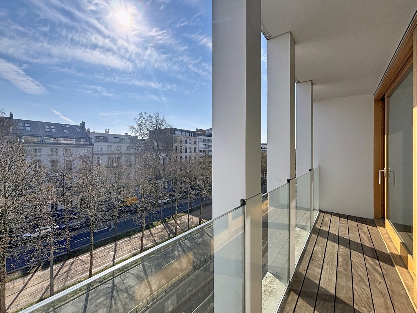 Open lichte leefruimte met aansluitend open keuken, terras met zicht op de Leien, wasruimte, gastentoilet, twee slaapkamers, badkamer met inloopdouche en dubbele lavabo.