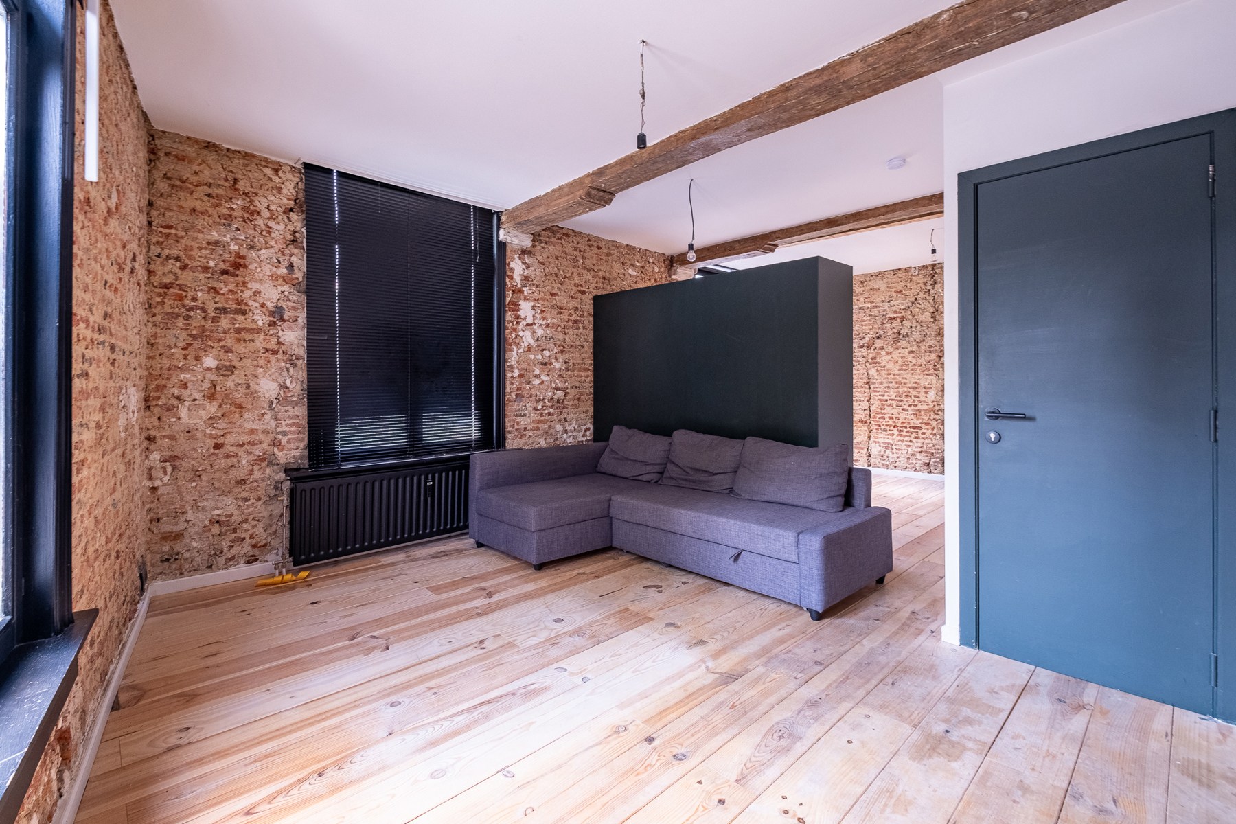 De grote kast dient als 'room devider'. Achter de kast bevind zich de slaaphoek.