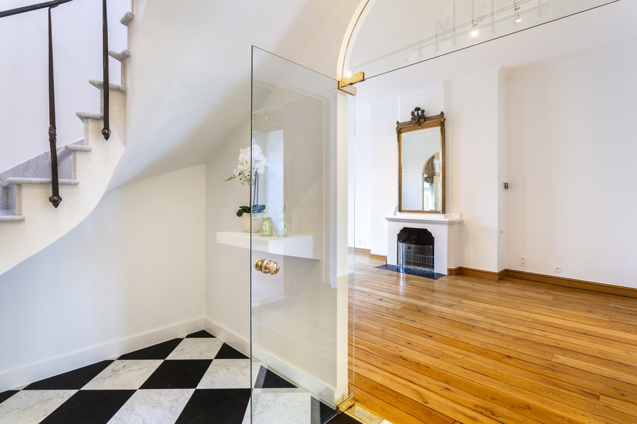 Dit uitzonderlijk riant duplex-appartement bevindt zich op de eerste en tweede verdieping van een statige herenwoning in het hartje van Antwerpen en biedt een bewoonbare oppervlakte van ca 315 m², aangevuld met een royaal terras van ca 41 m².