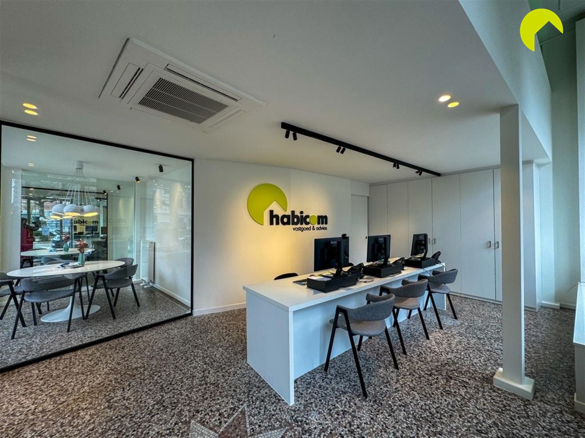 Het kantoor beschikt over een aparte vergaderruimte. De charme van de oude tegelvloer voegt een uniek karakter aan het interieur. Vervolgens bevindt zich achteraan een volledig uitgeruste keuken.