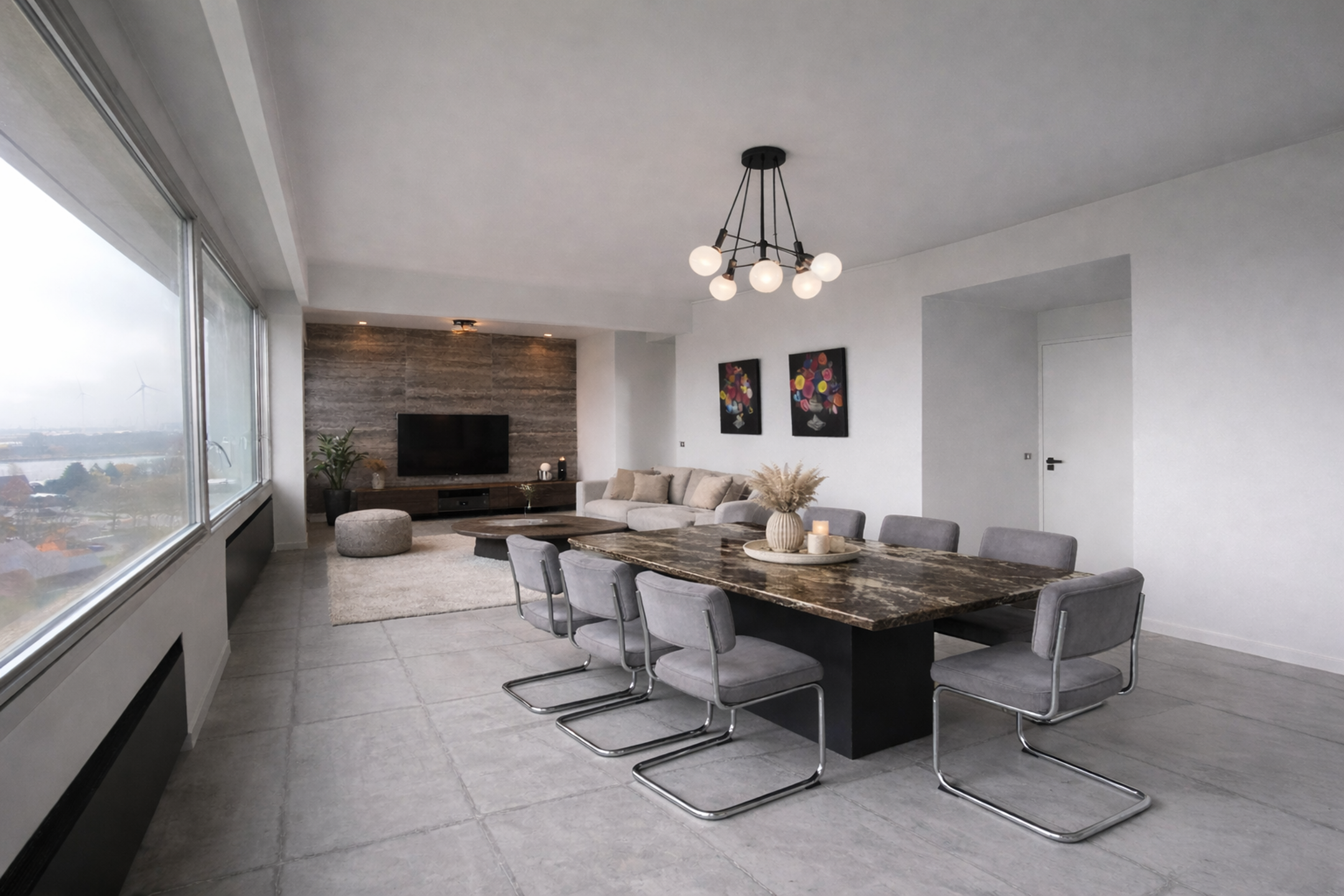 Gemeubeld appartement op de 9de verdieping van residentie 'Riverside Tower' met heerlijke uitzichten en fantastische lichtinval.