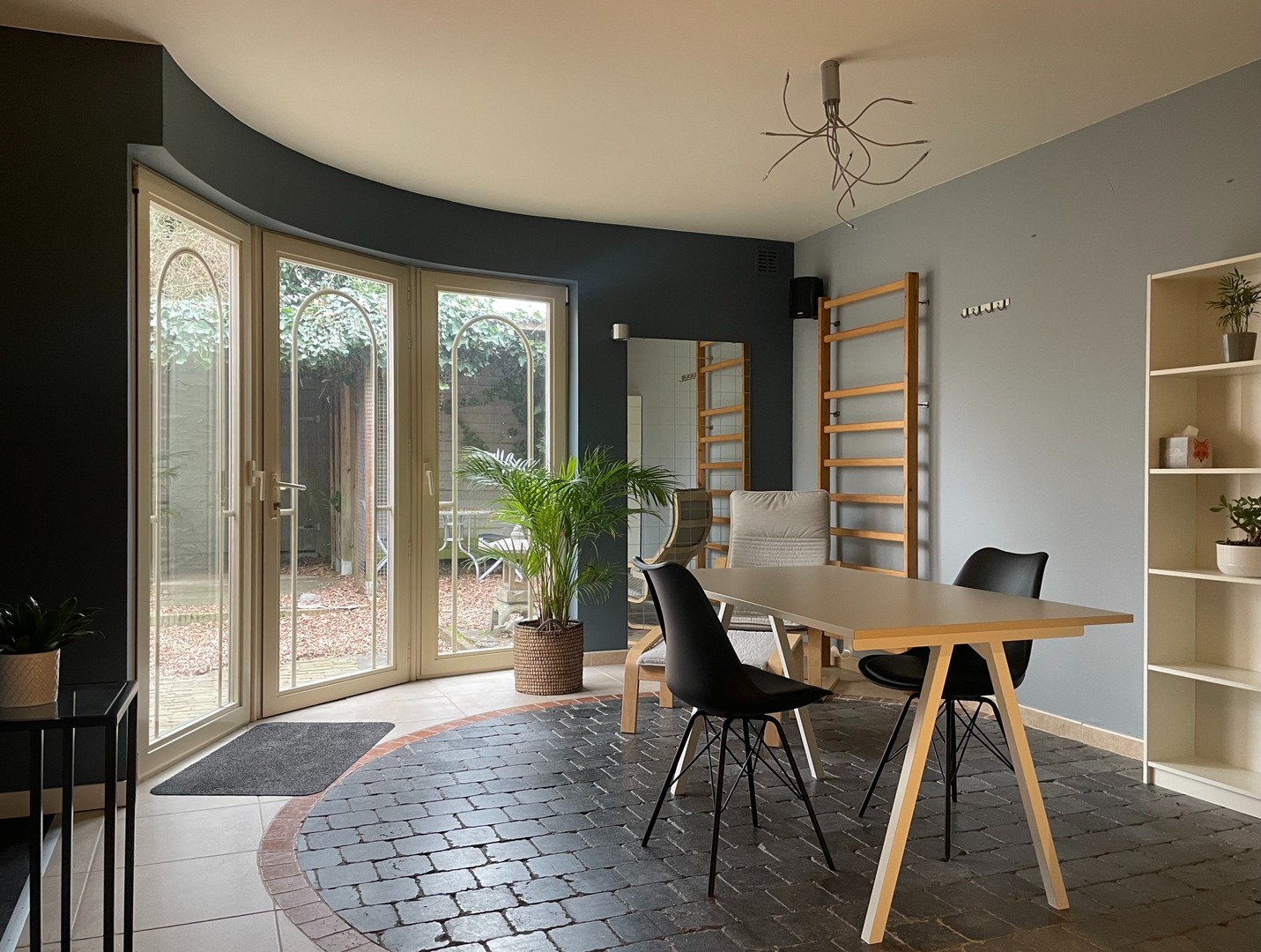 De praktijk bied je een open en lichte ruimte met toegang tot een terras. Ook is er een bureauruimte voorzien en een kitchenette. Daar vind je een ijskast, microgolf en lavabomeubel. Ze is uiterst geschikt voor psychologen, coaching, consulenten, diëtiste, voedingsdeskundigen, therapeuten,....