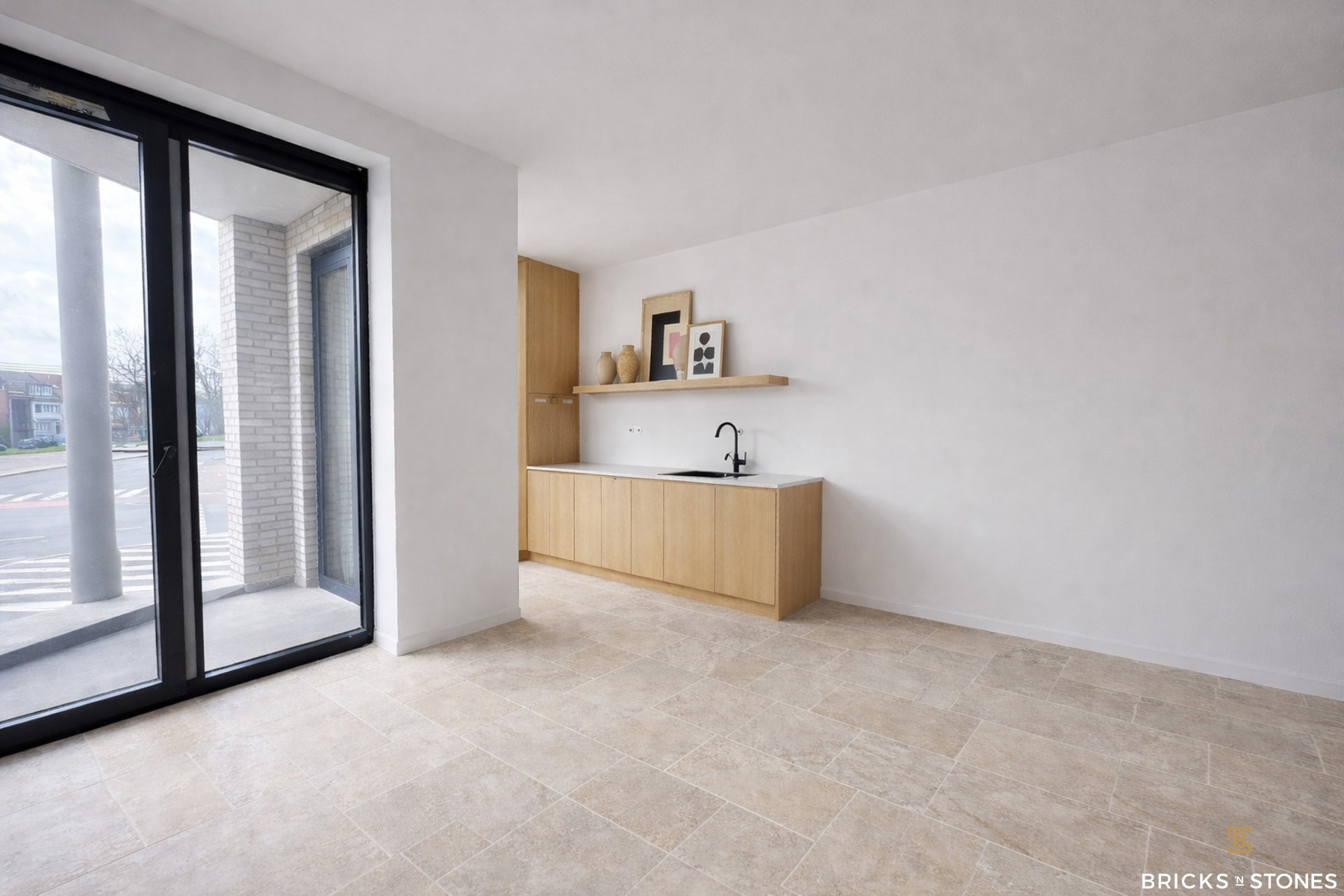 Aangename en lichtrijke leefruimte dankzij de grote raampartijen. Aansluitend vinden we een volledig geïnstalleerde keuken voorzien van kwalitatieve inbouwtoestellen en praktische kastruimte. Aansluitend bevindt zich een ruim en zonnig terras, ideaal om in alle rust te genieten. Ingerichte badkamer voorzien van inloopdouche, wastafel en toilet.