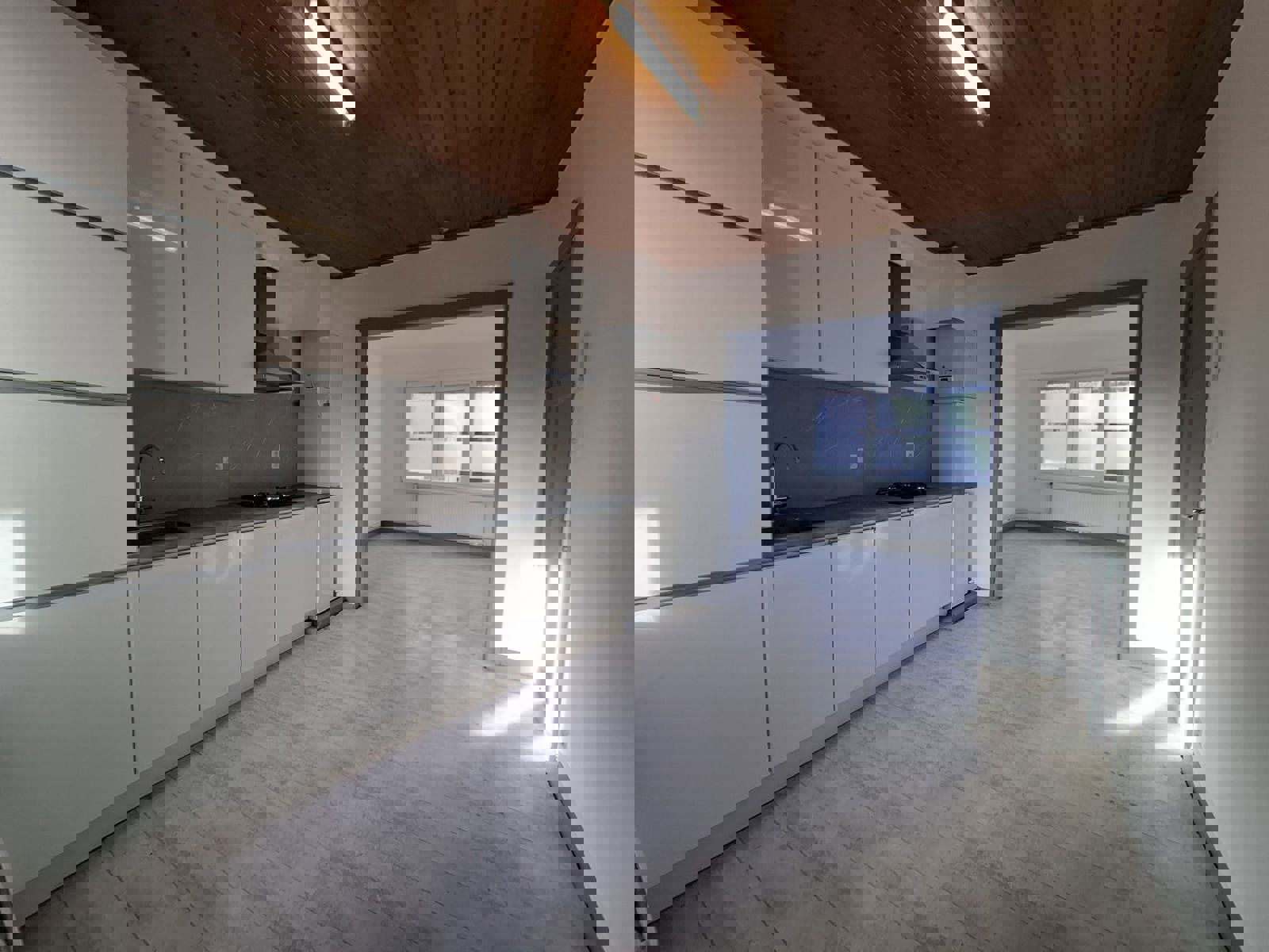 De royale leefruimte baadt in natuurlijk licht en sluit naadloos aan op de nieuwe, modern ingerichte keuken, perfect voor gezellige familiemomenten.