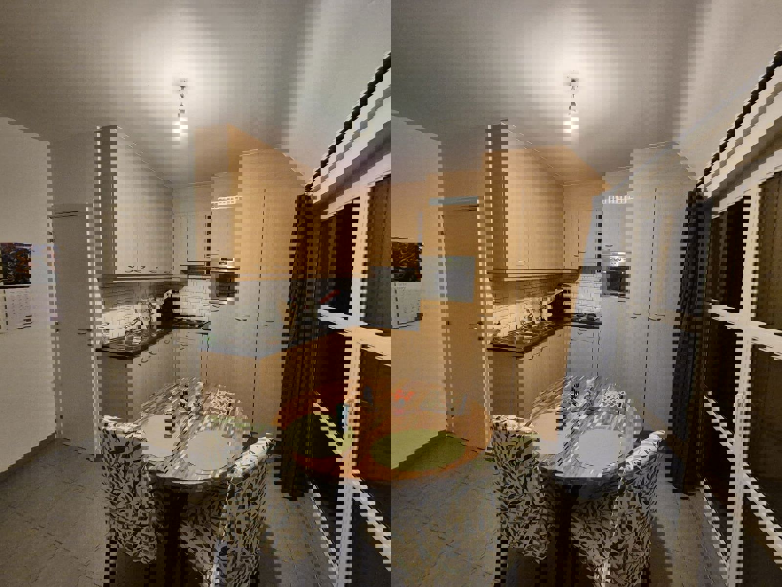 Het appartement heeft een volledig uitgeruste keuken met combi-oven, vaatwasser, koelkast met diepvriesvak en elektrische kookplaat. Alsook is er een badkamer met bad-douchecombinatie aanwezig en een apart gastentoilet.