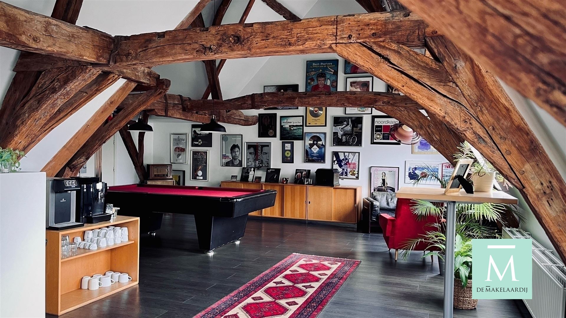 Je kan eveneens gebruik maken van de superleuke lounge met open keuken, lounge, biljarthoek. Ook is er een heel fijne tuin aanwezig, zodat u onder het team of met uw klanten kan genieten van deze mooie binnentuin.