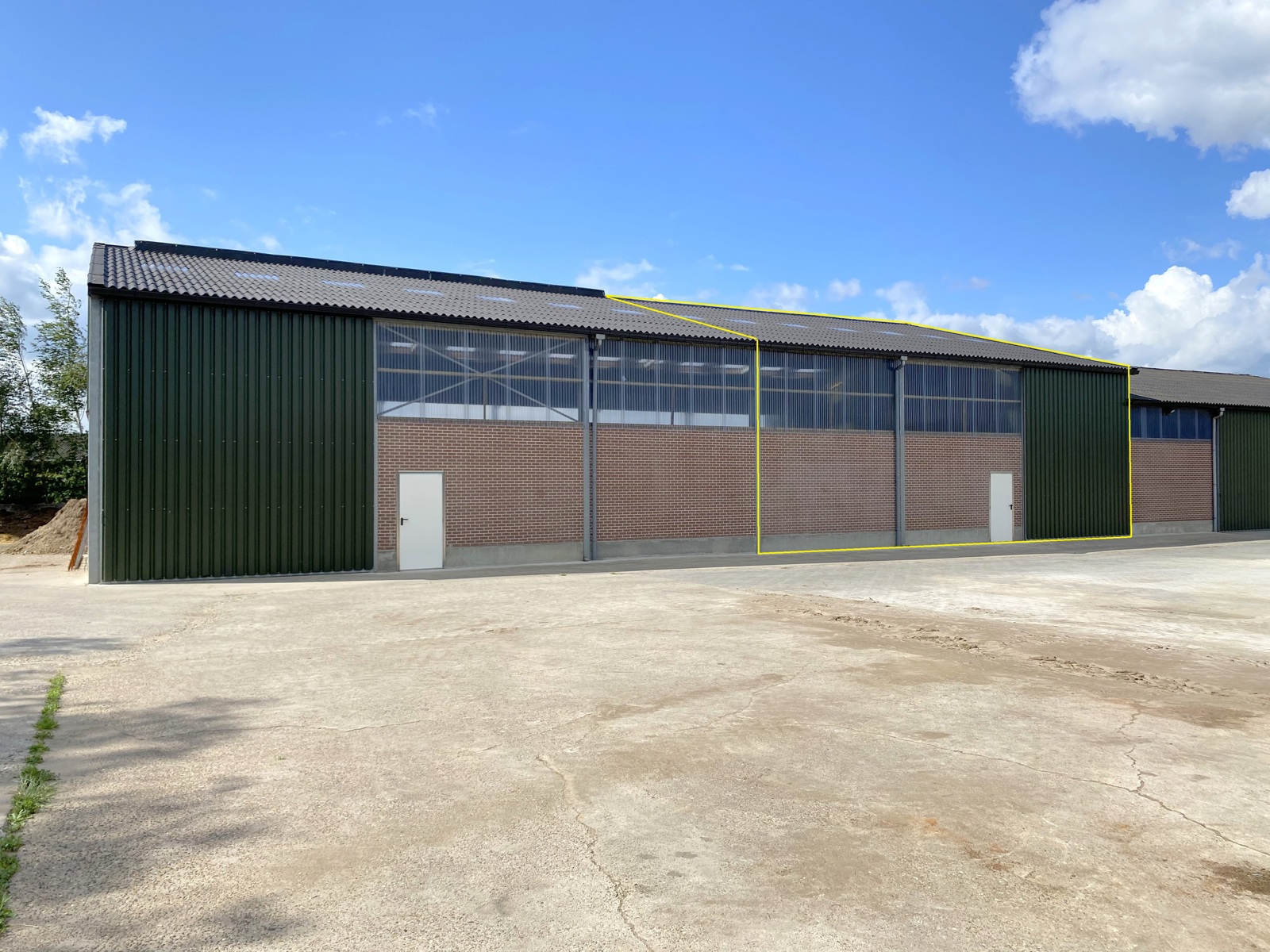 De unit heeft een oppervlakte van 300m² (15m x 20m) en is bereikbaar via een schuifpoort.