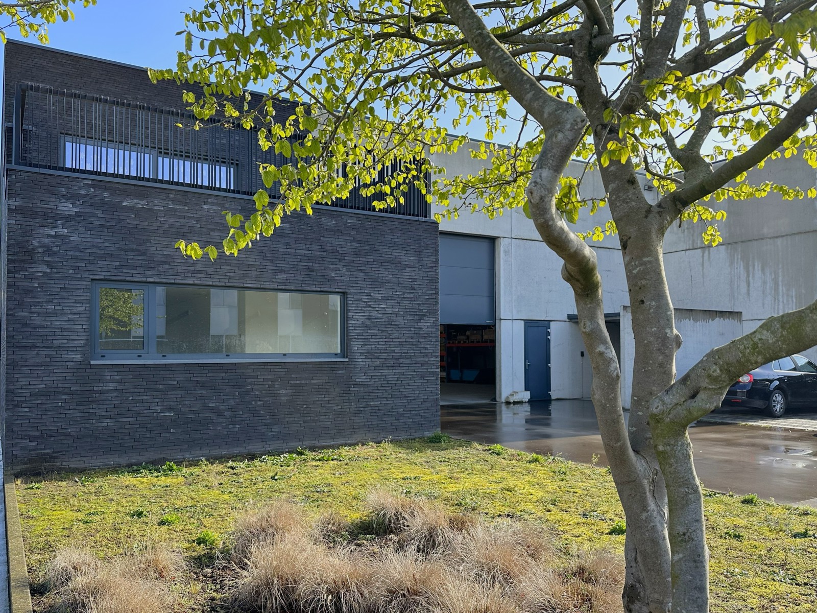 De kantoorruimte is toegankelijk via een aparte ingang en het volledige eigendom is afgesloten met een geautomatiseerde poort.
