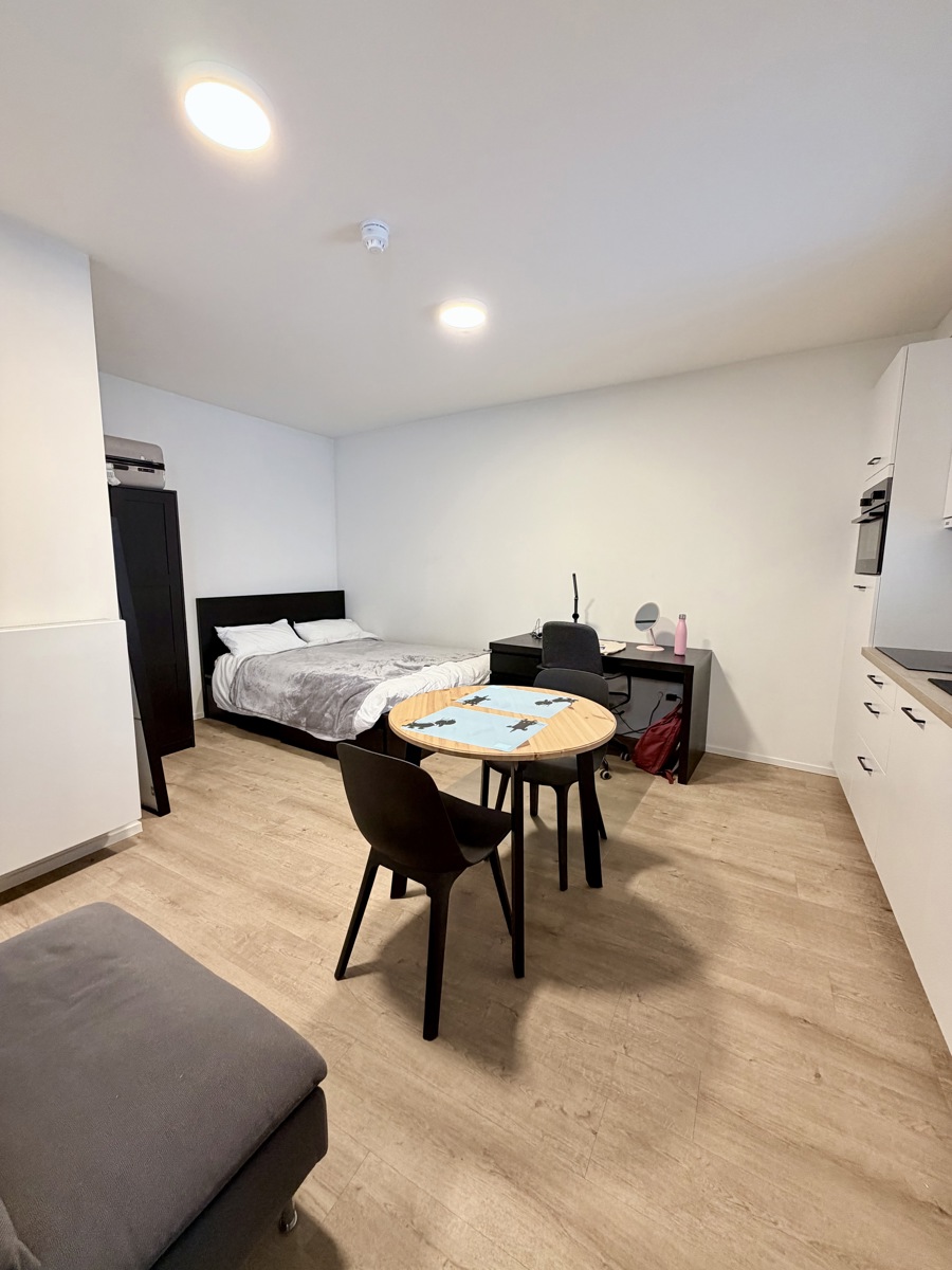 De studio is gelegen op de eerste verdieping aan de achterzijde van het gebouw en wordt volledig bemeubeld verhuurd! Bovendien is er een gemeenschappelijke keuken met buitenruimte, ideaal om samen te kokerellen. Je fiets stallen is mogelijk in de inpandige fietsenstalling.
