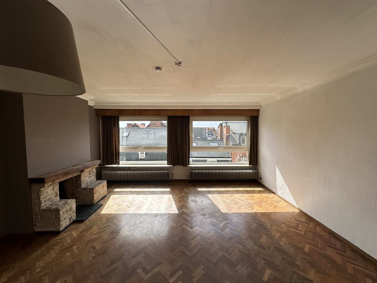 Via de centrale inkomhal betreedt u het appartement. Aan de linkerkant bevindt zich de gezellige, geparketteerde leefruimte, die geniet van een mooi uitzicht over het historische stadscentrum. Achteraan liggen twee volwaardige slaapkamers, evenals een aparte toiletruimte en een badkamer.