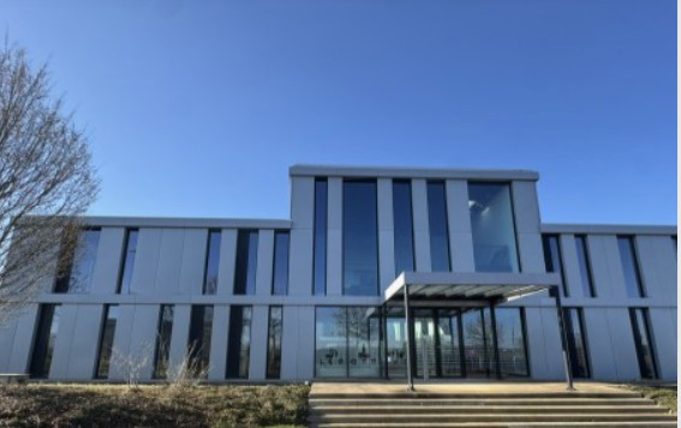 Semi-industriële gebouw dat magazijn-, kantoor- en polyvalente ruimtes combineert.